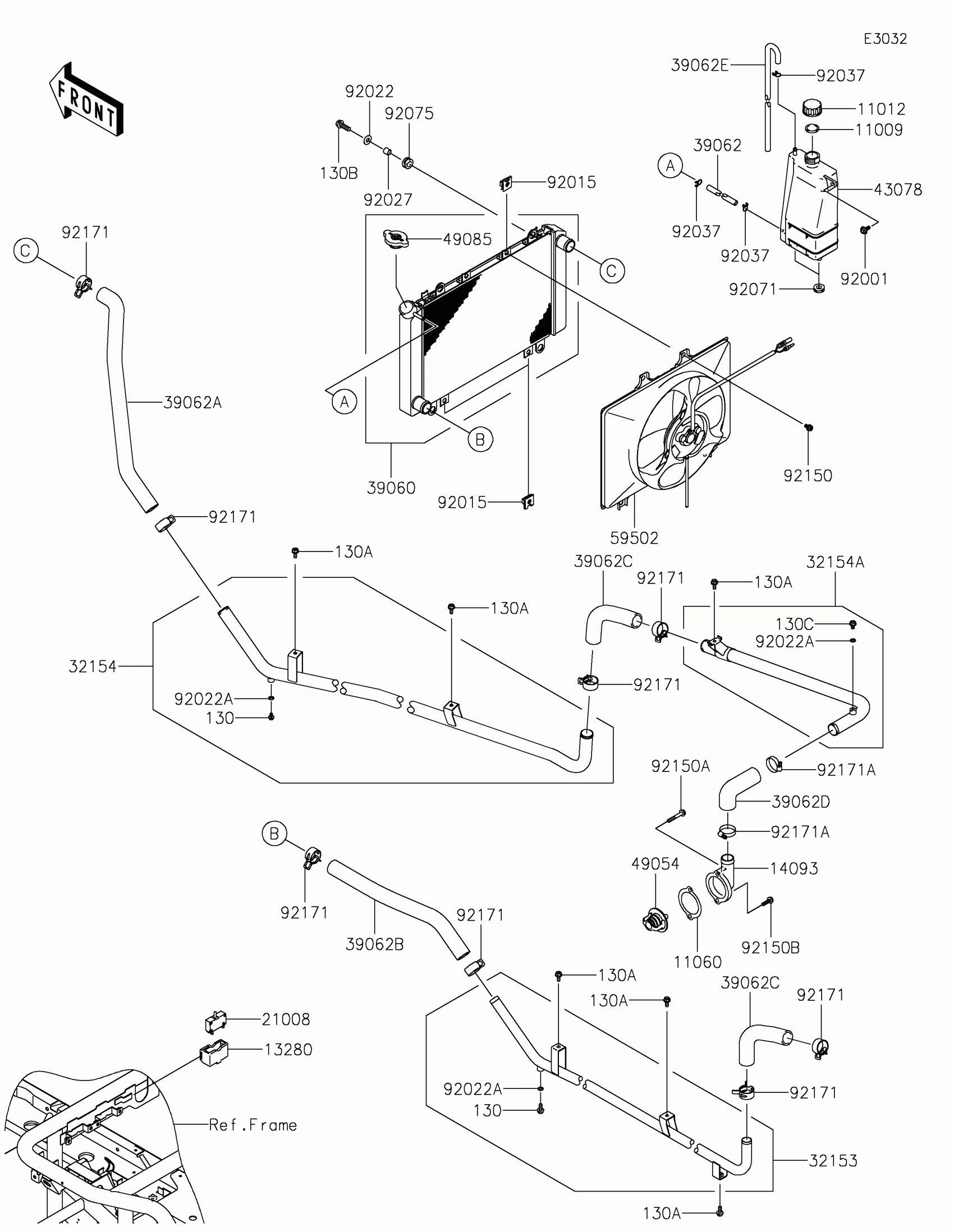Kawasaki MULE™ 4000 Radiator(-JK1AFCP1 MB507910) Diagram
