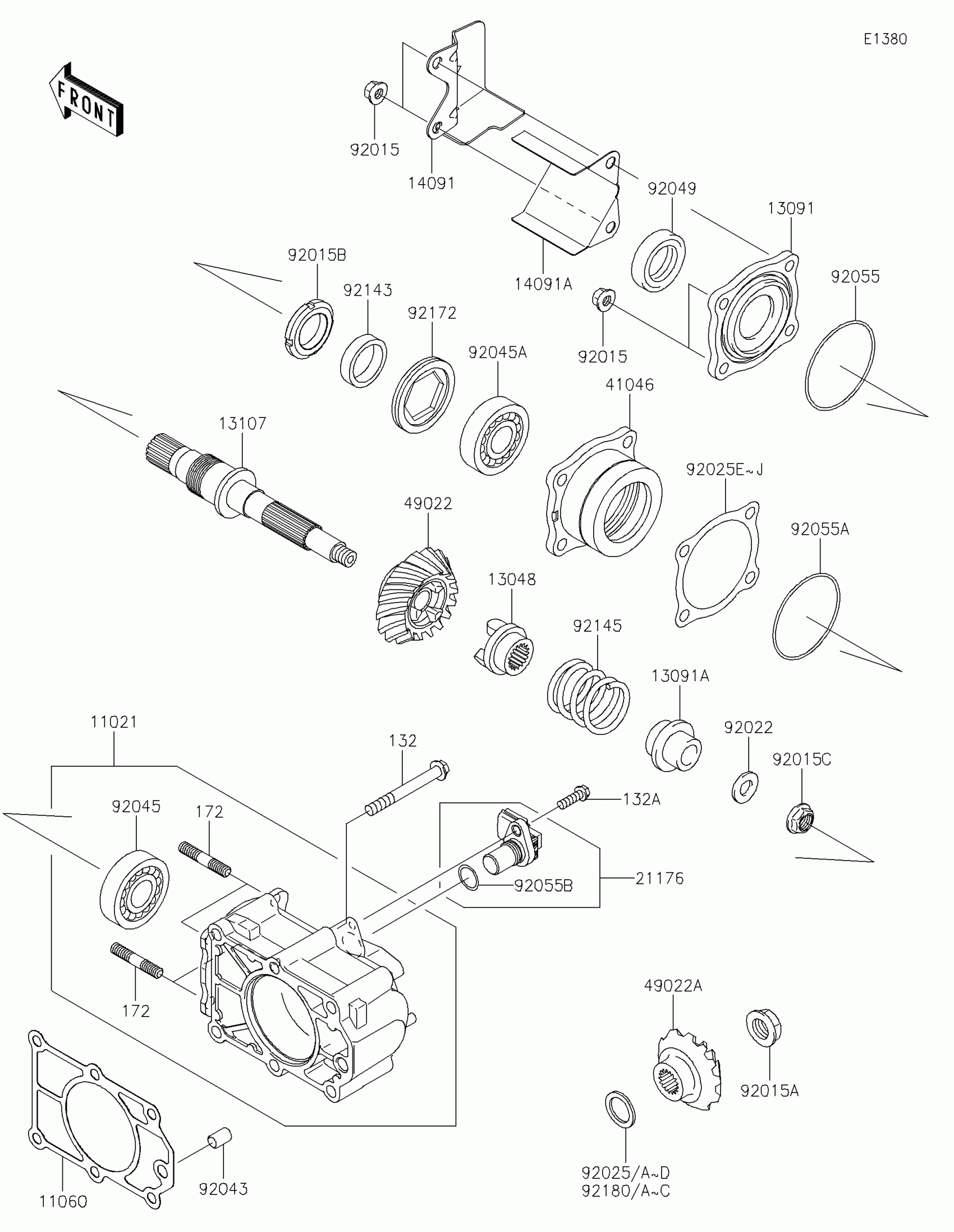 Kawasaki MULE™ 4010 4x4 FE Bevel Gear Case Diagram