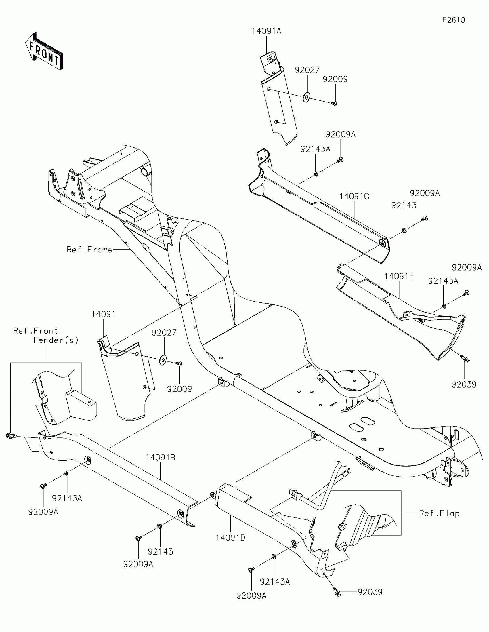 Kawasaki MULE™ 4010 4x4 FE Side Covers/Chain Cover Diagram