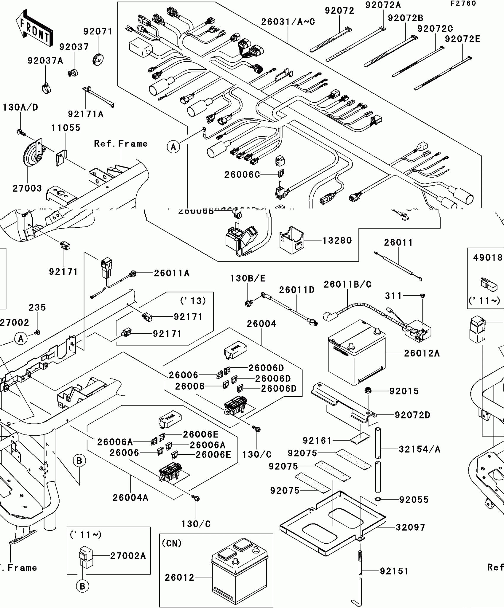 Kawasaki MULE™ 4010 TRANS4x4® DIESEL Chassis Electrical Equipment Diagram