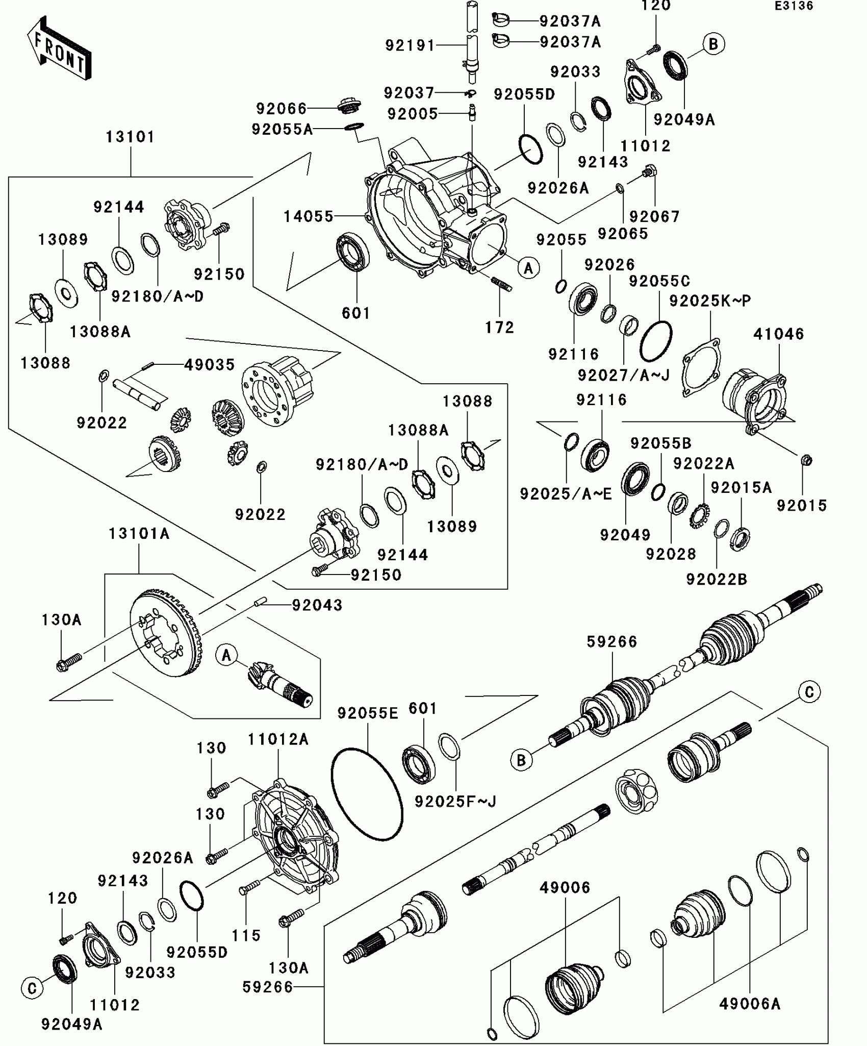 Kawasaki Mule 4010 Trans4x4 Drive Shaft-Front Diagram