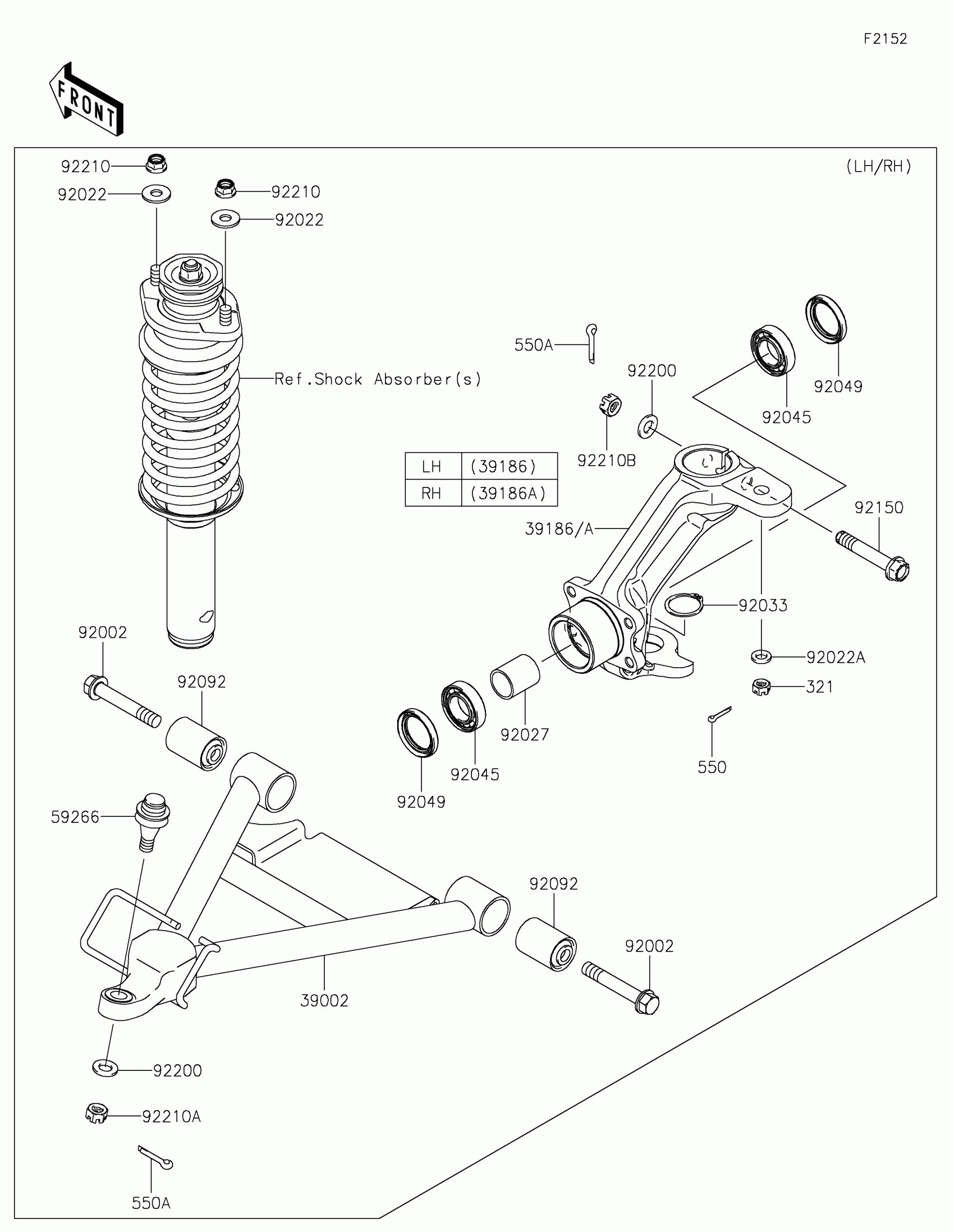 Kawasaki MULE™ 4010 TRANS4x4® FE Front Suspension Diagram