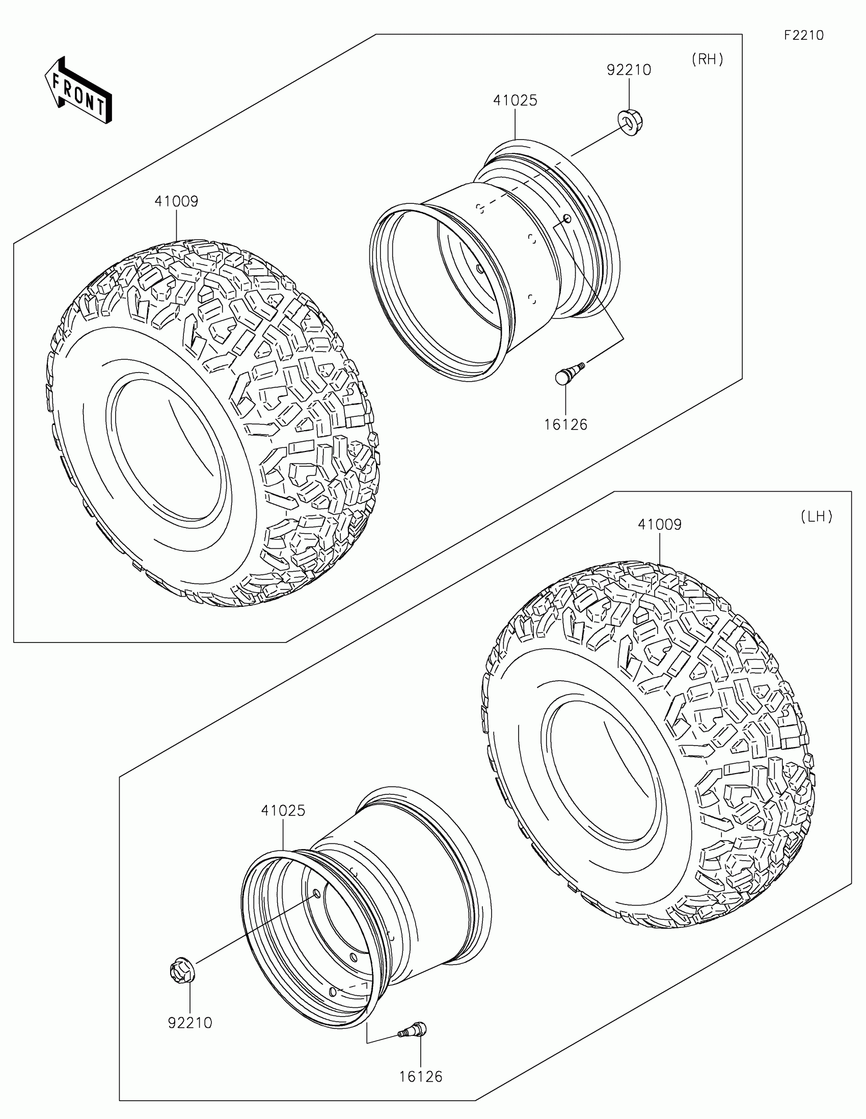 Kawasaki MULE™ 4010 TRANS4x4® FE Wheels/Tires Diagram