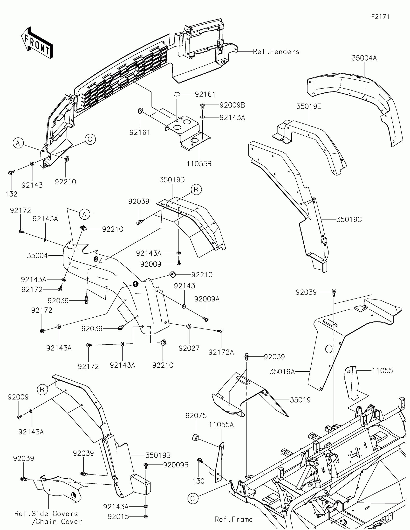 Kawasaki MULE™ 4010 TRANS4x4® Front Fender(s) Diagram