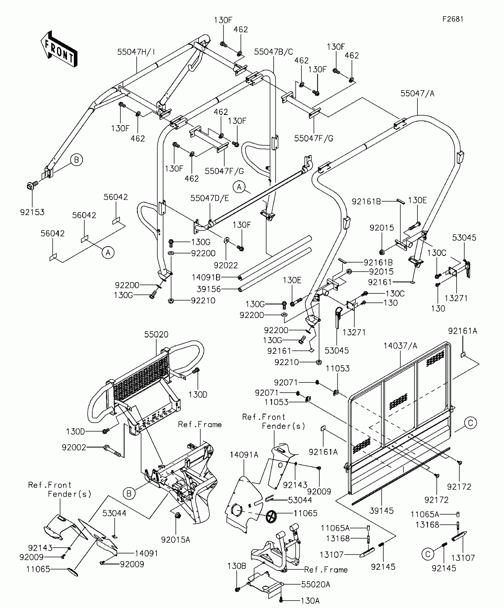 Kawasaki Mule 4010 Trans4x4 Guards/Cab Frame Diagram