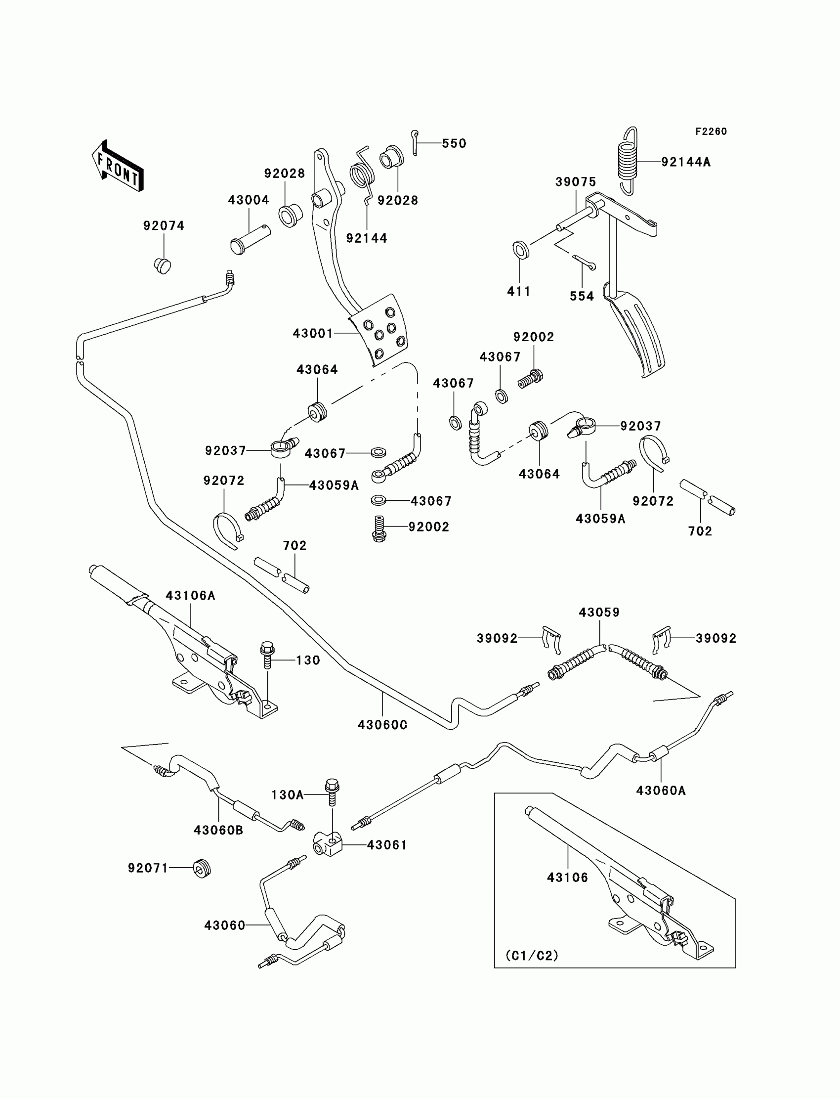 Kawasaki Mule 550 Brake Pedal/Throttle Lever Diagram