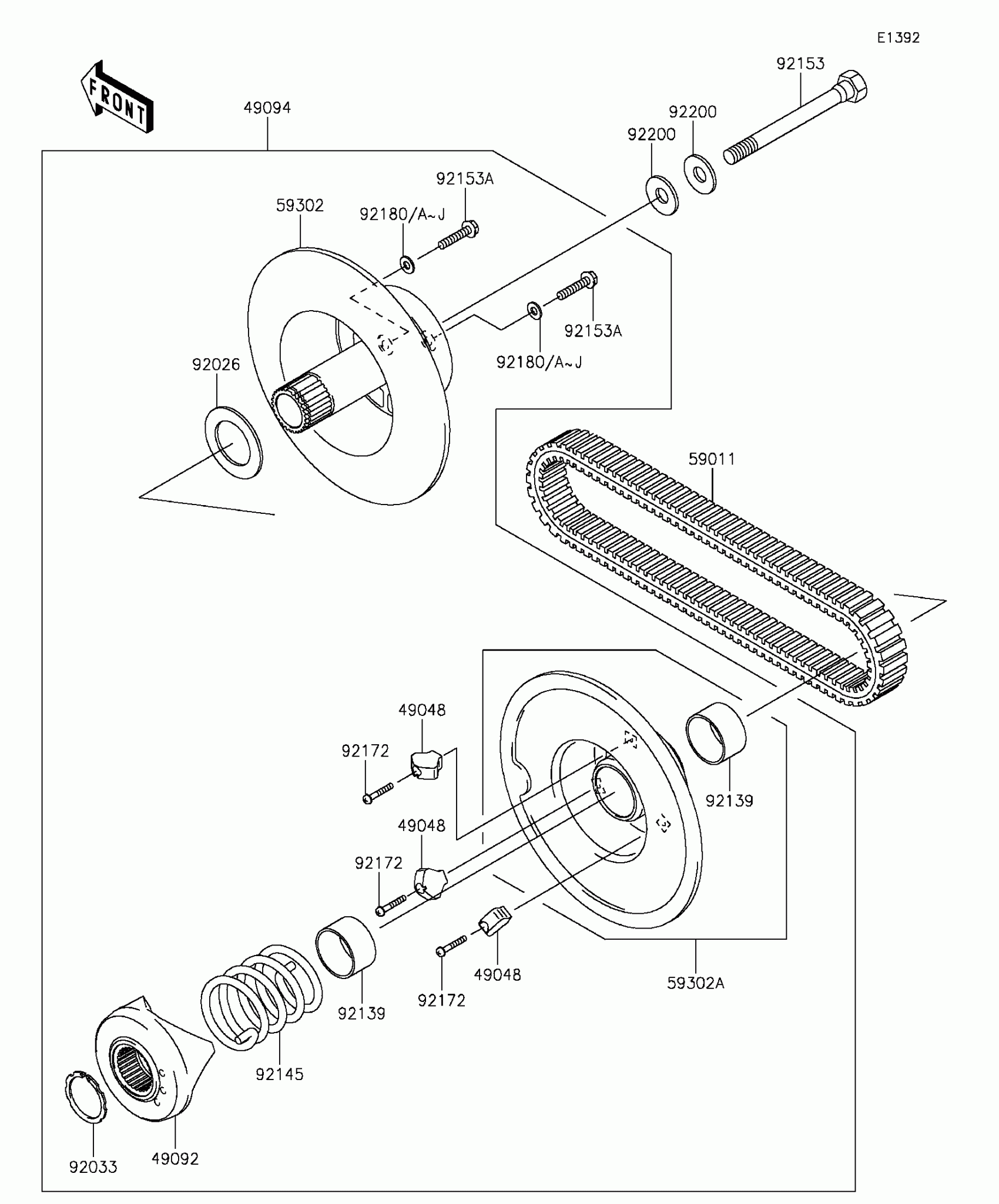 Kawasaki MULE™ 610 4x4 Driven Converter/Drive Belt Diagram