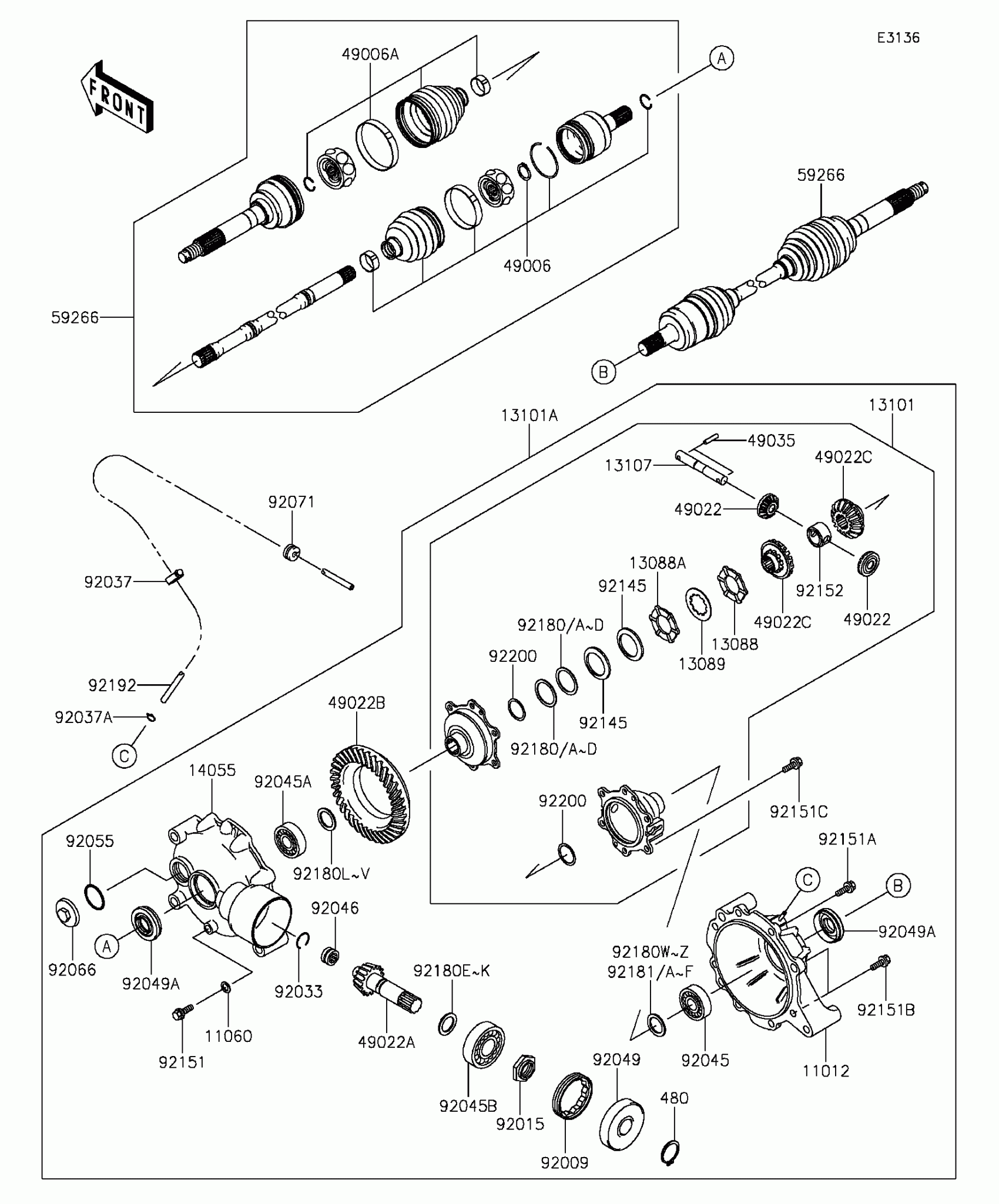 Kawasaki MULE™ 610 4x4 XC Drive Shaft-Front Diagram
