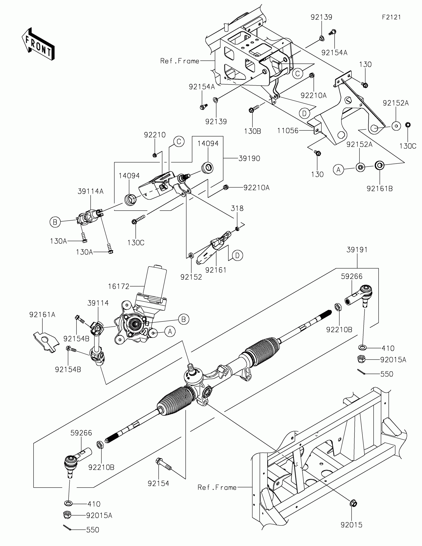 Kawasaki MULE PRO-DX™ EPS Steering Shaft Diagram