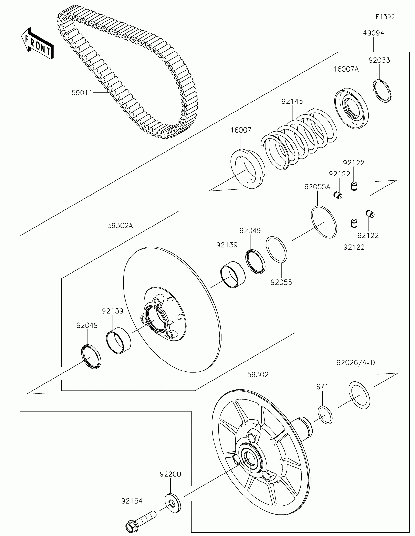 Kawasaki MULE PRO-DXT™ EPS Driven Converter/Drive Belt Diagram
