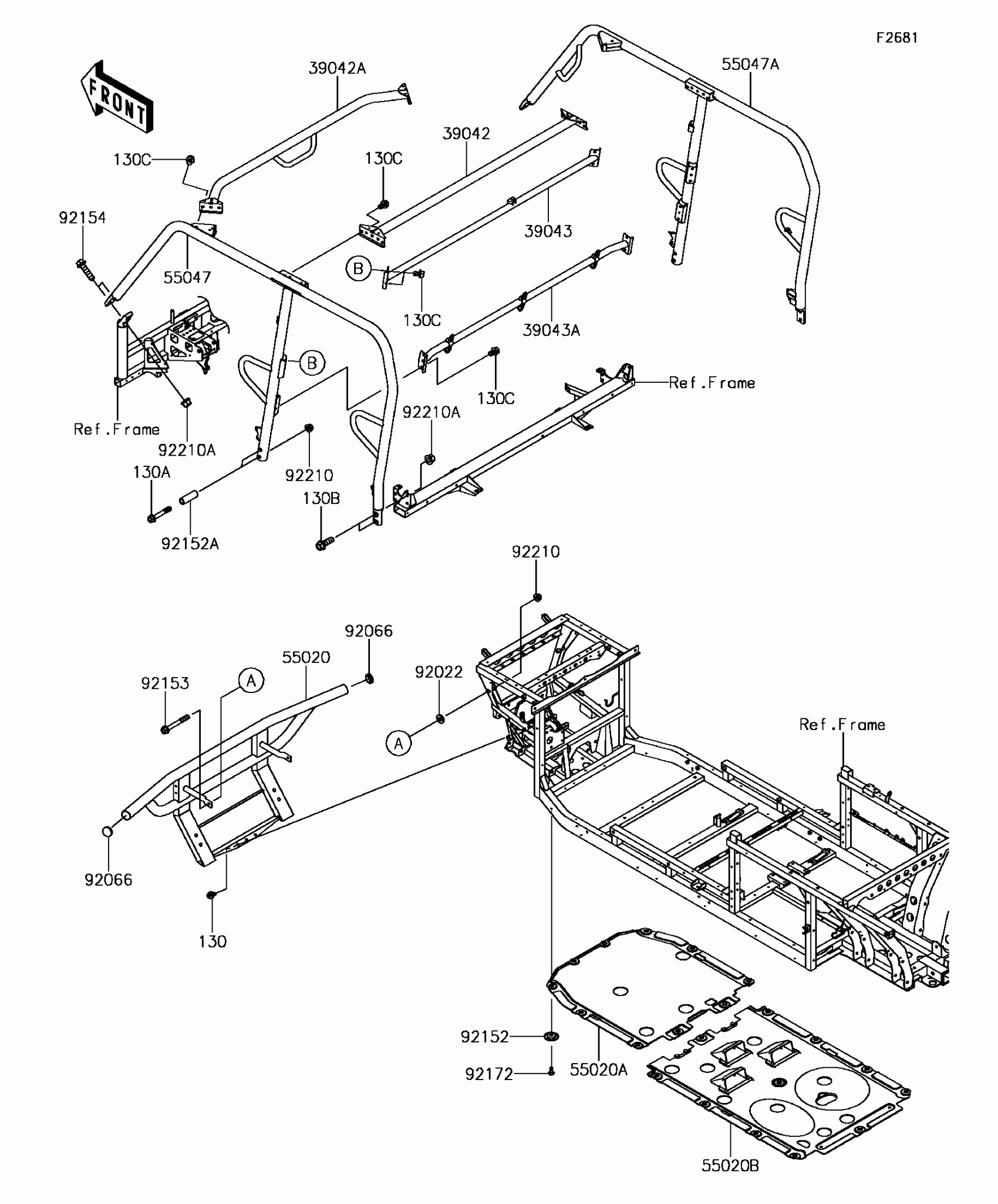 Kawasaki MULE PRO-DXT™ EPS LE DIESEL Guards/Cab Frame Diagram