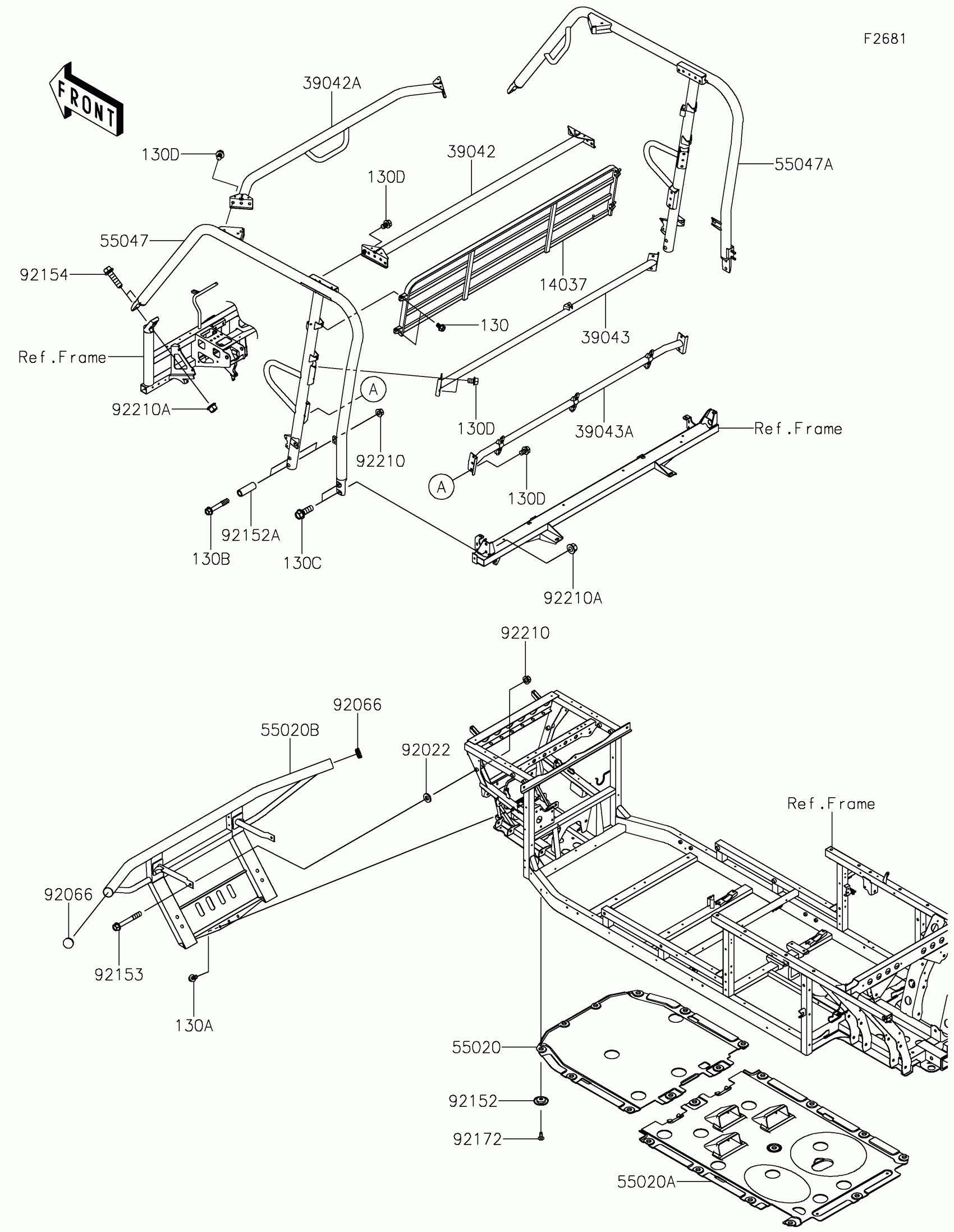 Kawasaki MULE PRO-FX™ 1000 HD EDITION Guards/Cab Frame Diagram