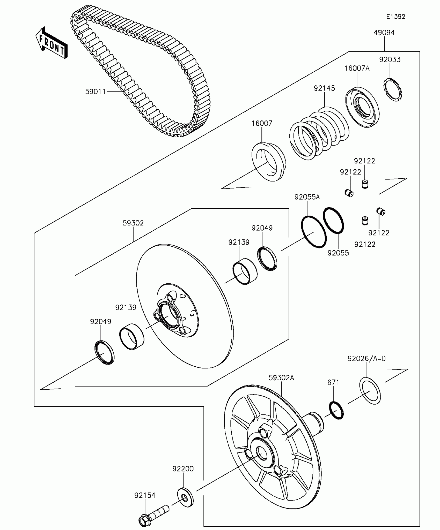 Kawasaki MULE PRO-FX™ Driven Converter/Drive Belt Diagram