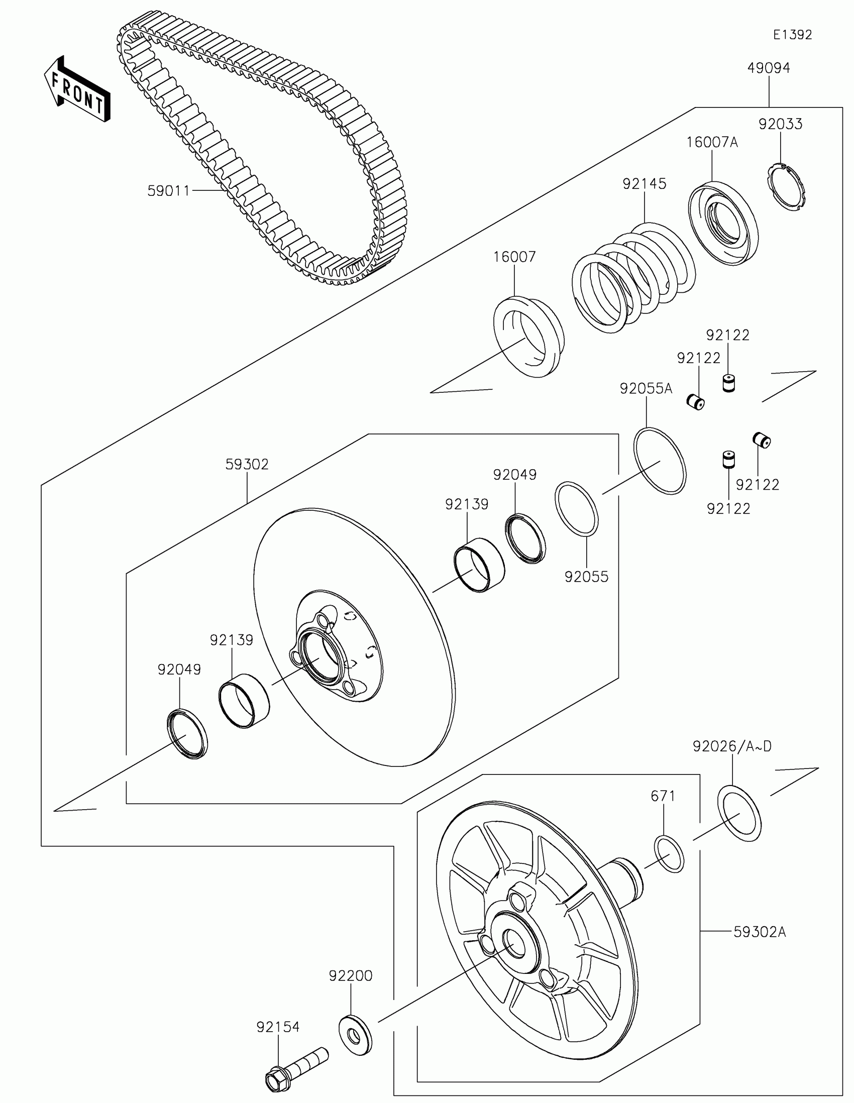 Kawasaki MULE PRO-FXR™ 1000 LE Driven Converter/Drive Belt Diagram