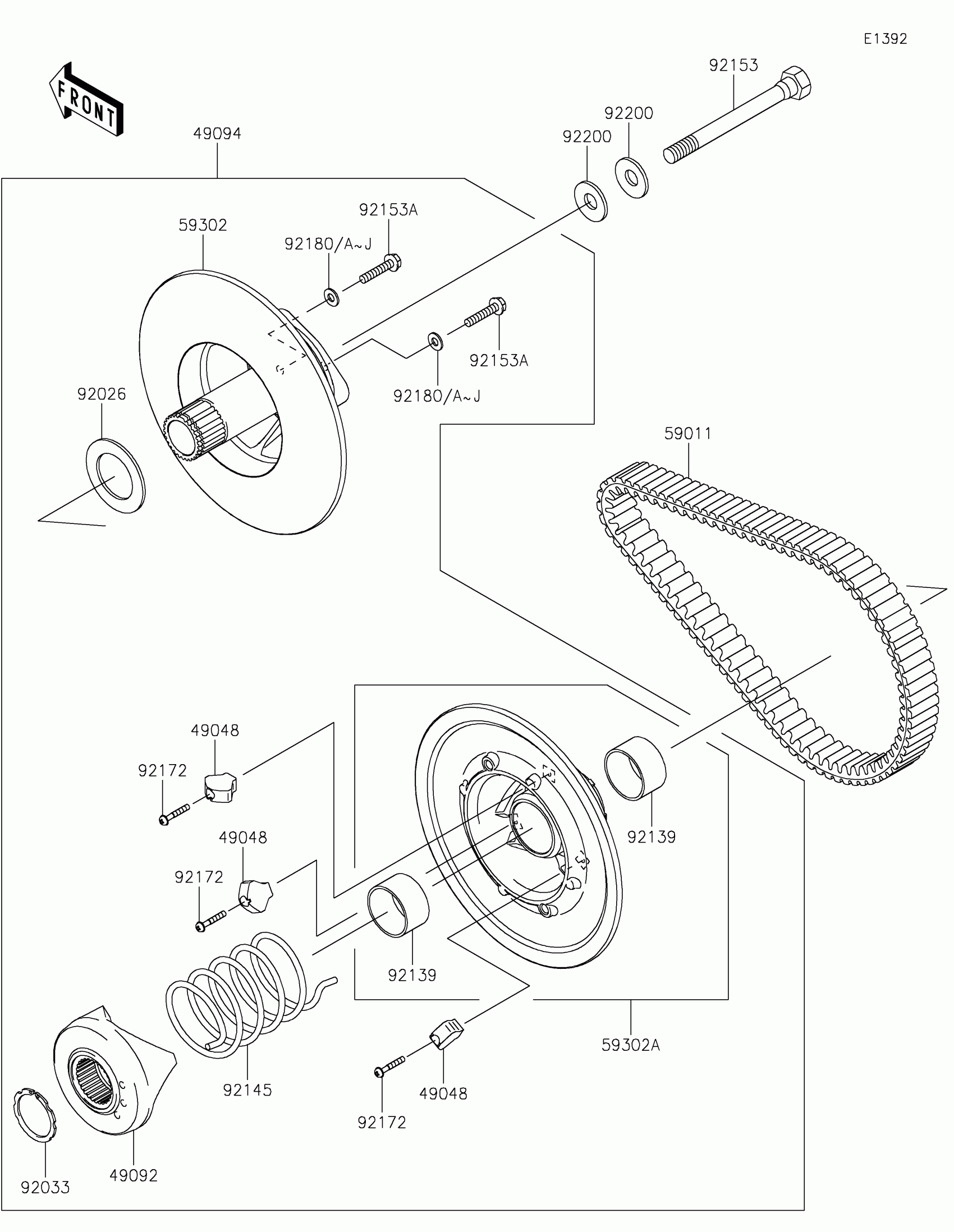 Kawasaki MULE SX™ 4x4 FE Driven Converter/Drive Belt Diagram