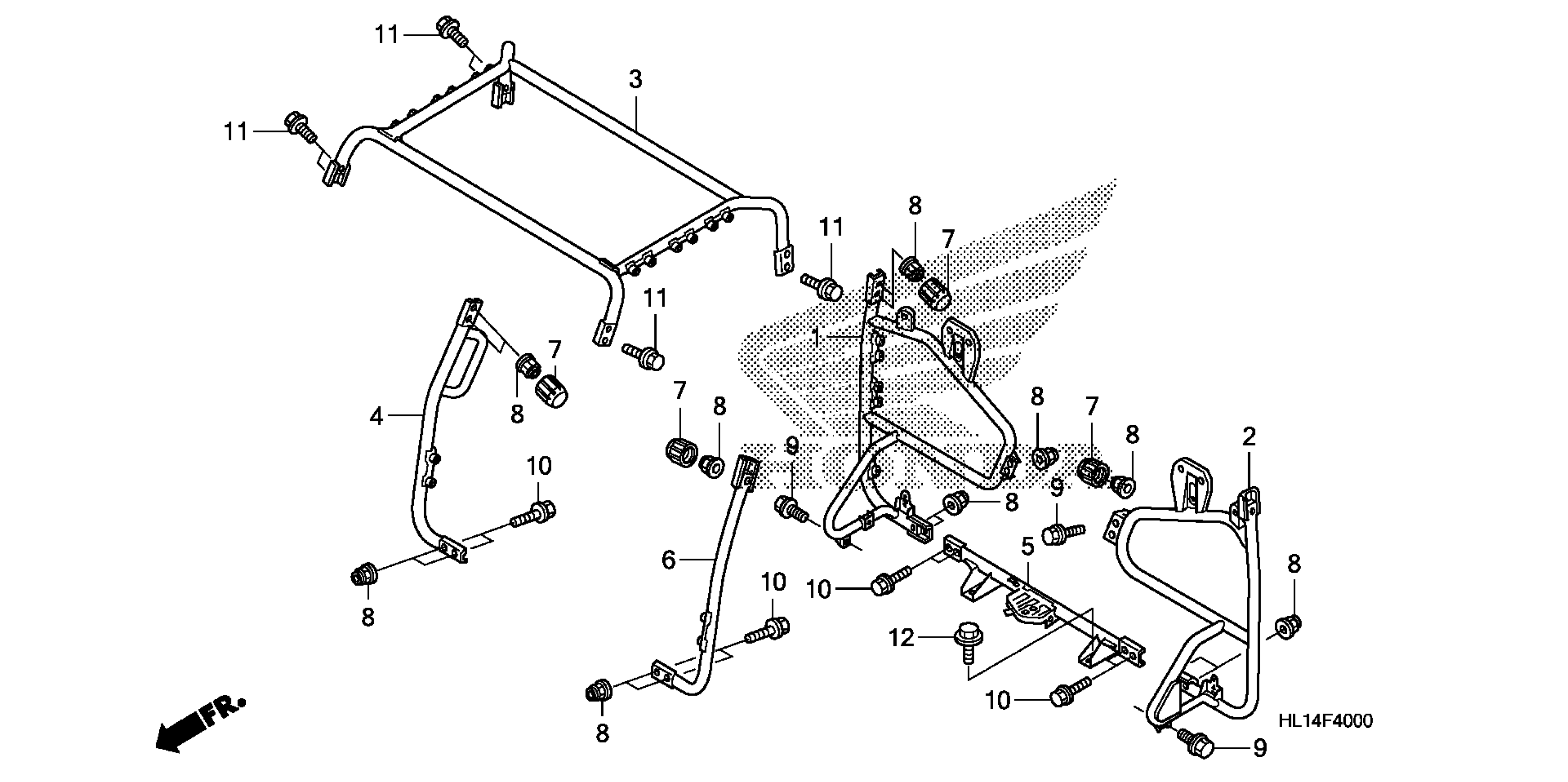 Honda MUV7002AC (13) BIG RED, MEX, VIN# 3H1VE011-DD400001 ROLL BAR Diagram