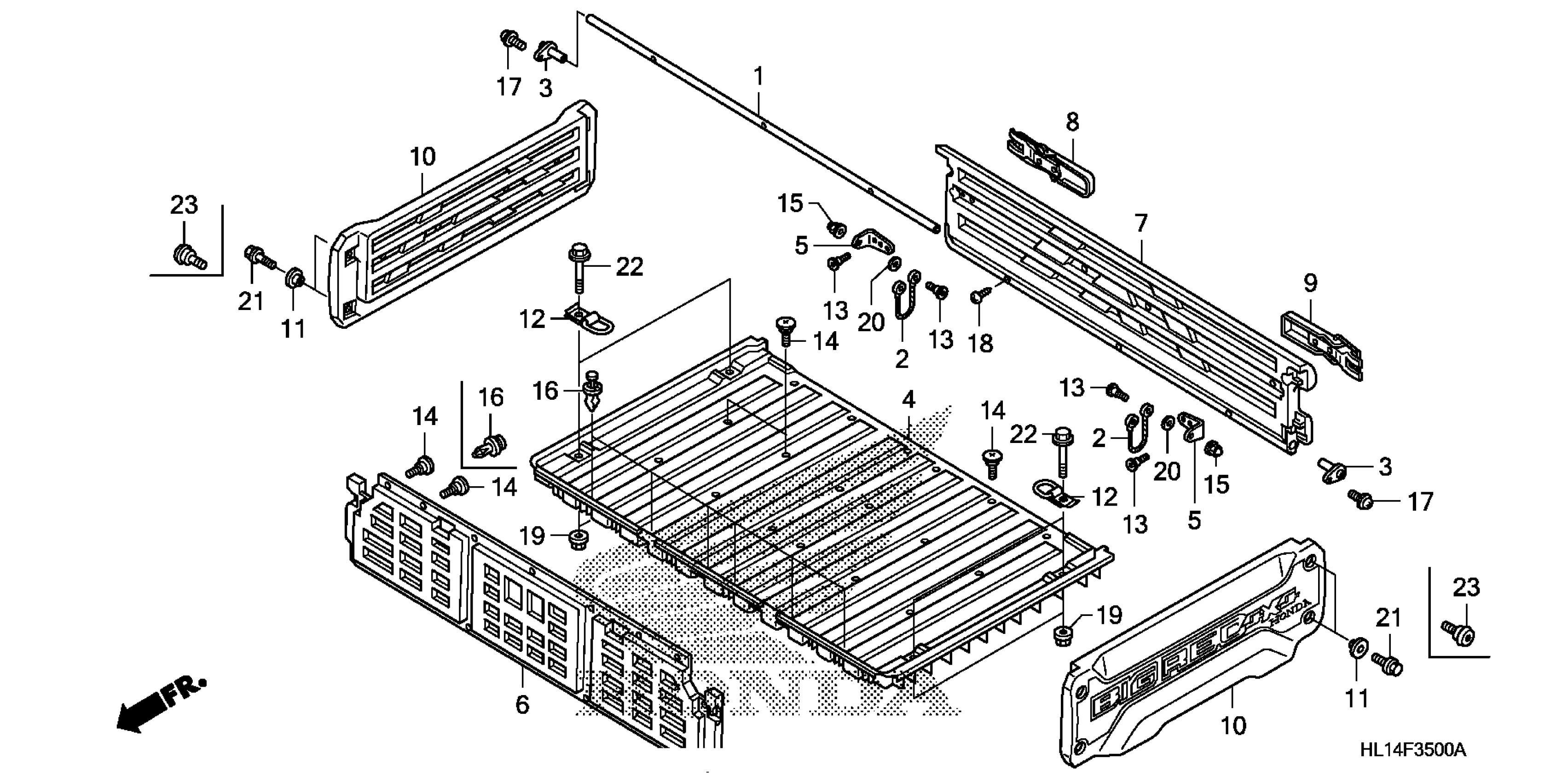 Honda MUV700AC (13) BIG RED, MEX, VIN# 3H1VE010-DD400001 BED PLATE + REAR GATE Diagram