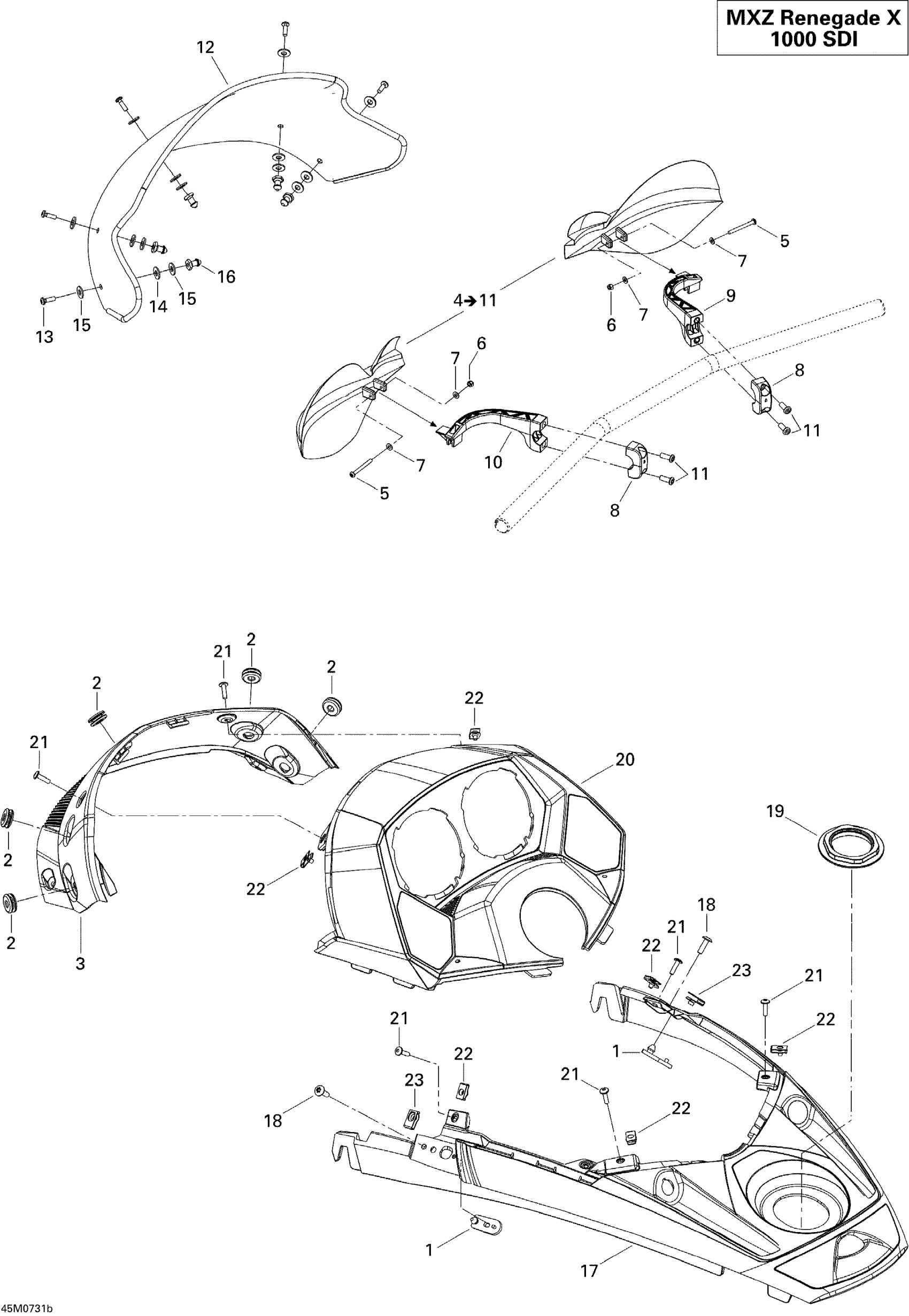 Ski-Doo MX Z 1000 SDI Renegade RT, 2007 Windshield And Console Renegade X Diagram