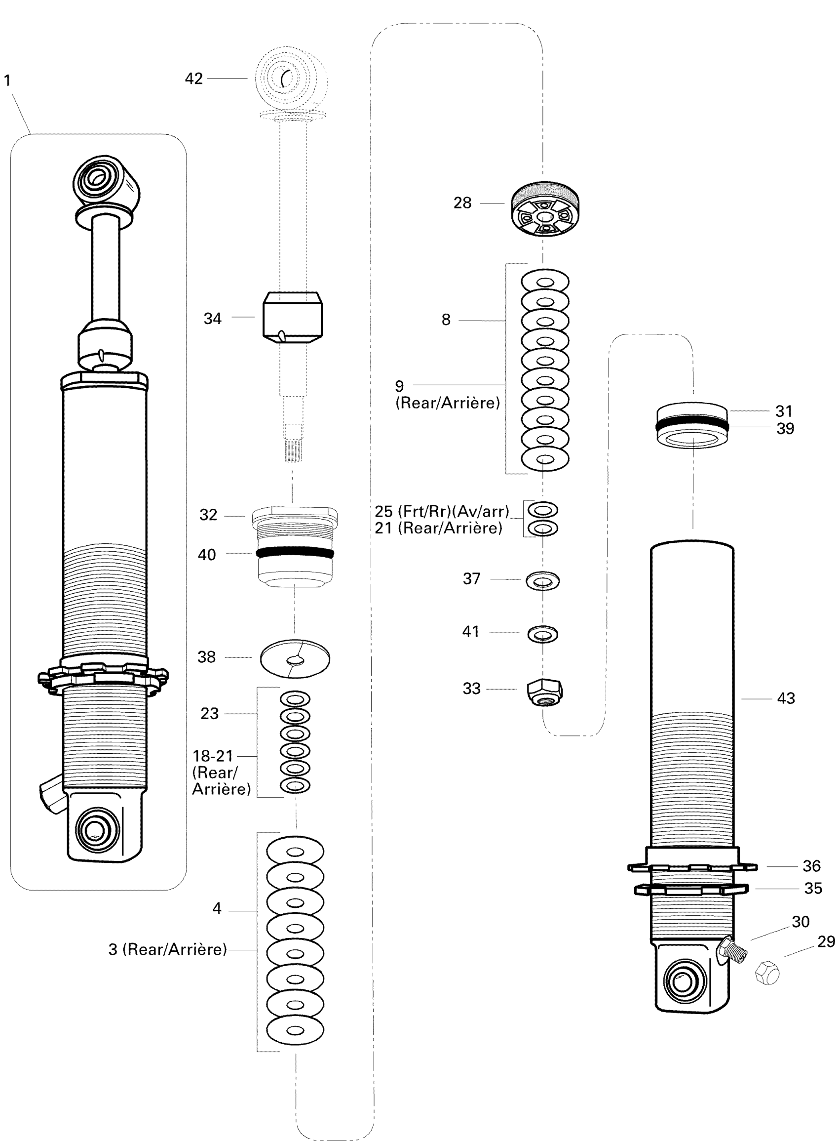 Ski-Doo MX Z 440, 1996 Take Apart Shock, Rear 440 Diagram