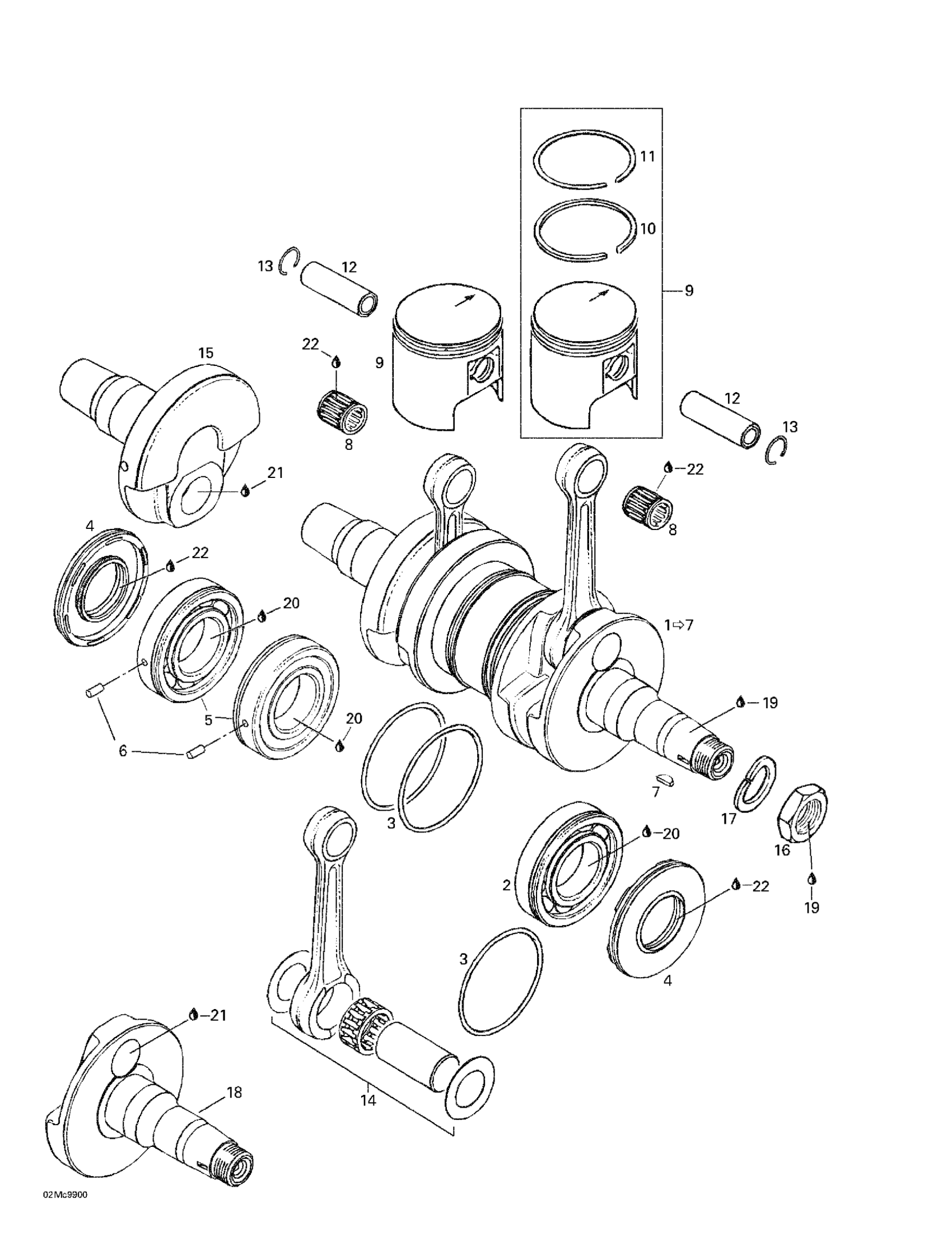 Ski-Doo MX Z 440, 1999 Crankshaft And Pistons Diagram