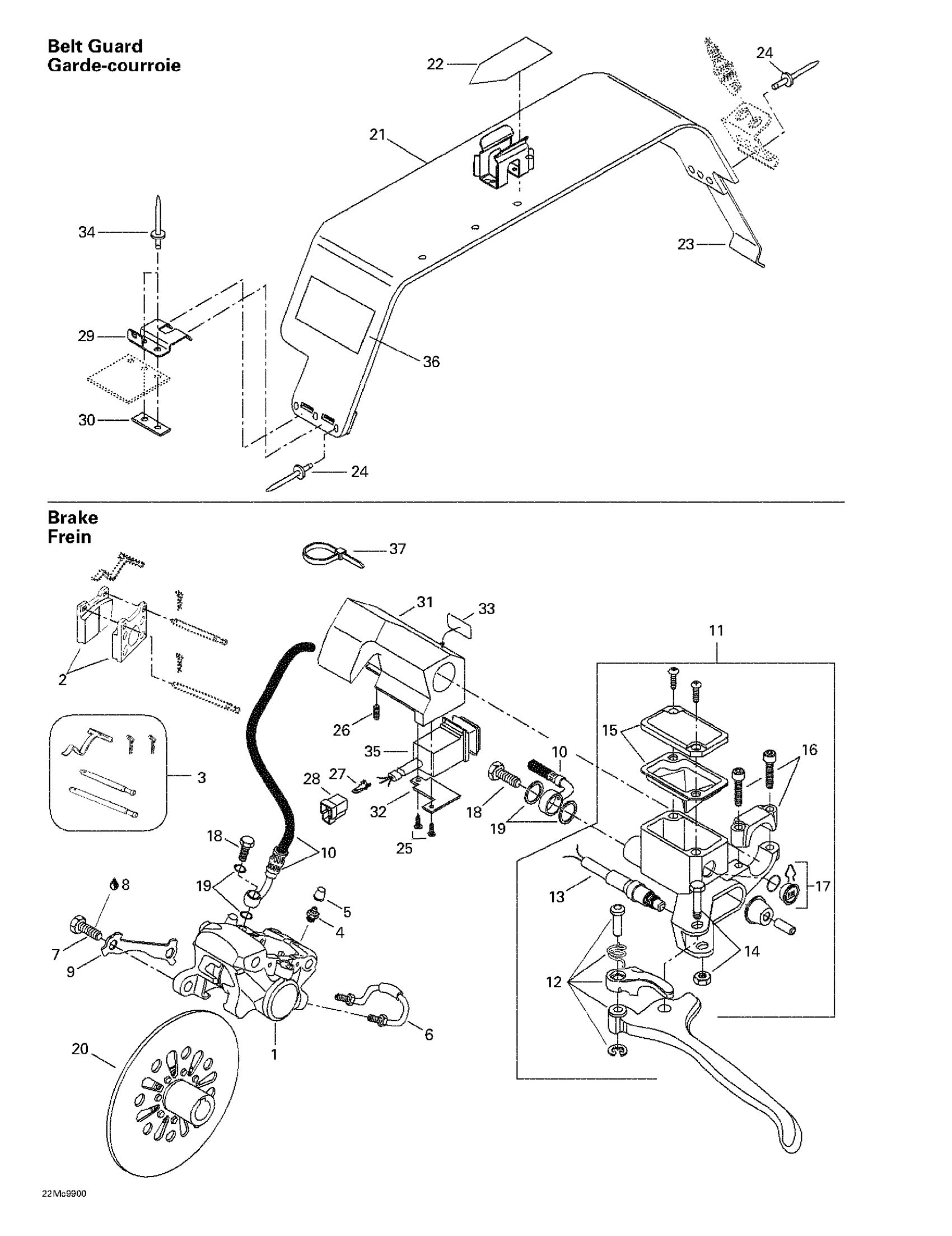 Ski-Doo MX Z 440, 1999 Hydraulic Brake And Belt Guard Diagram