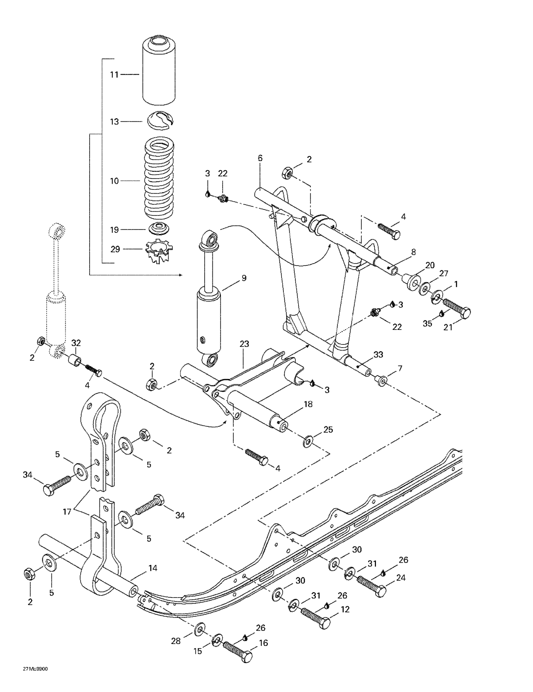 Ski-Doo MX Z 440, 1999 Front Arm, Rear Suspension Diagram