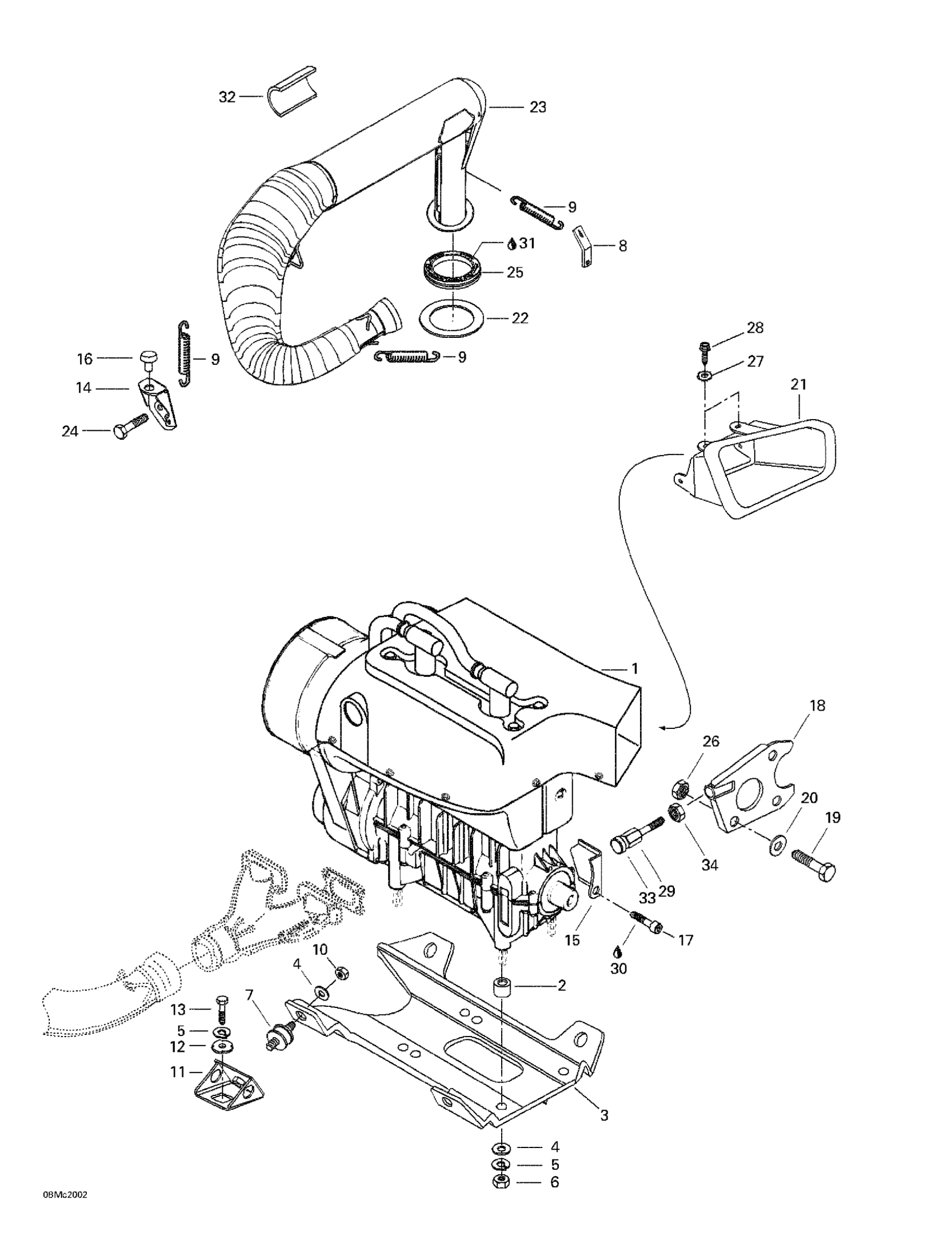 Ski-Doo MX Z 440, 2000 Engine Support And Muffler Diagram