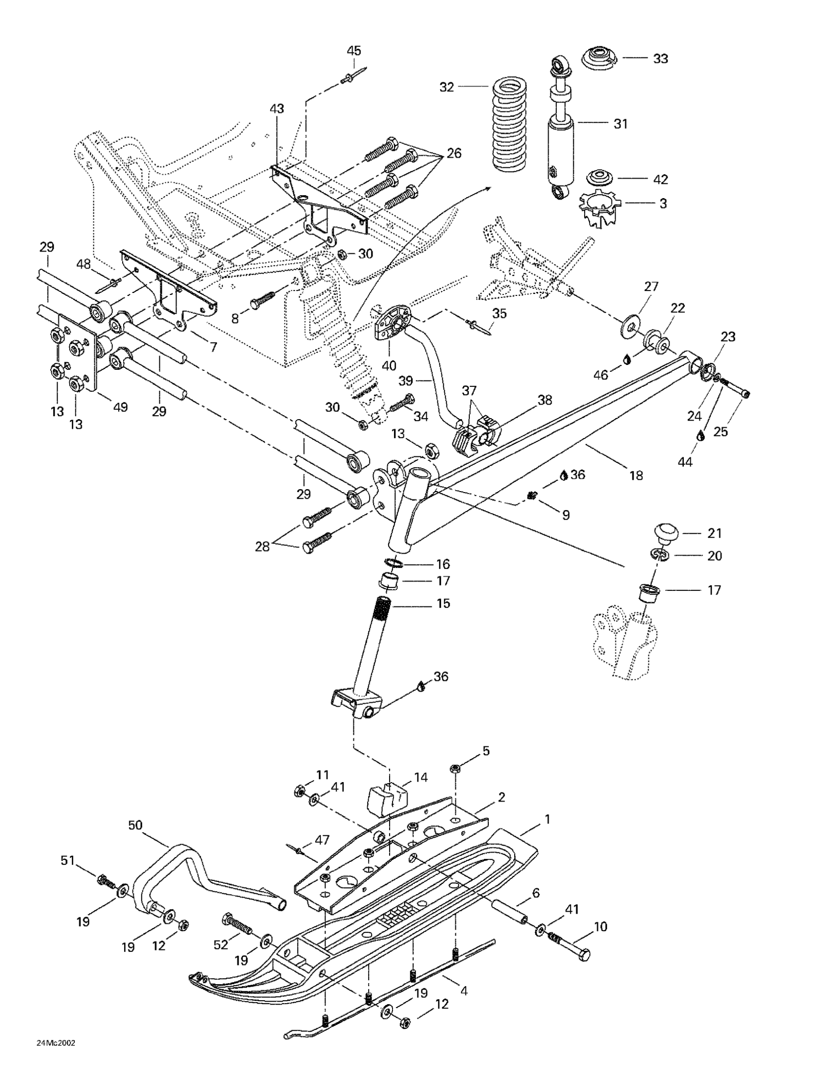 Ski-Doo MX Z 440, 2000 Front Suspension And Ski Diagram