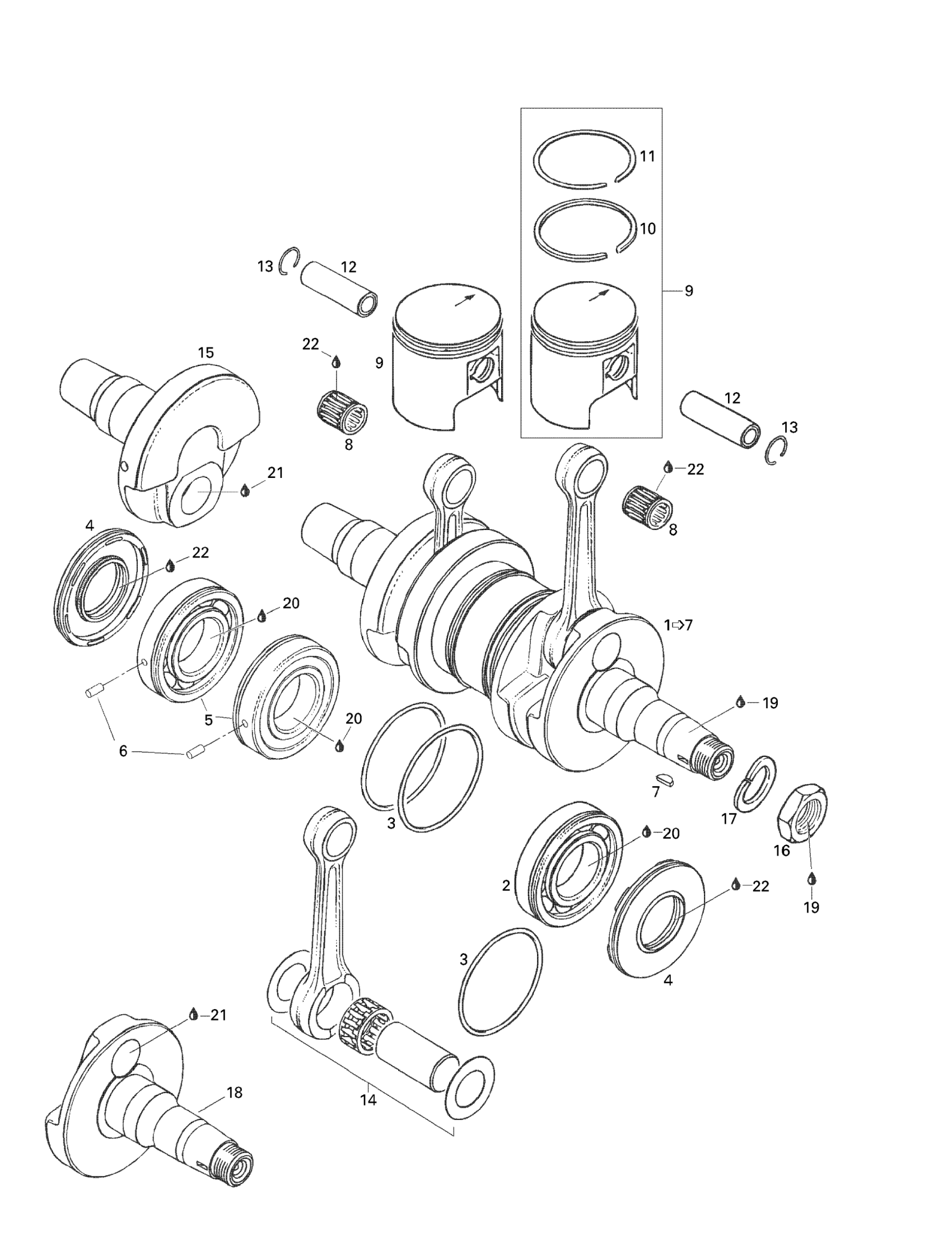 Crankshaft Ass'y | Includes 1 - 7.