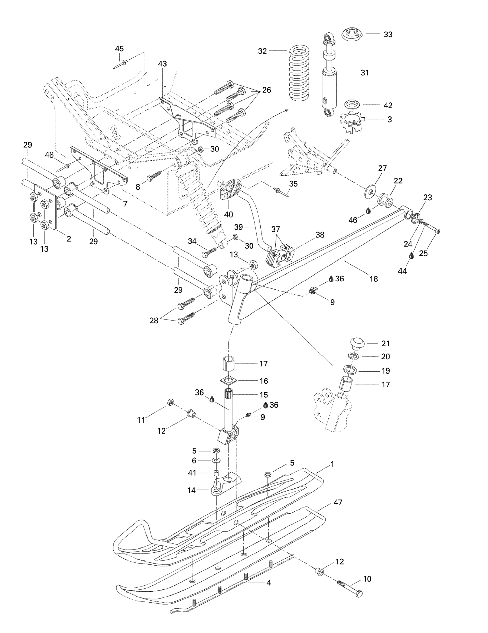 Ski-Doo MX Z 440 F, 1998 Front Suspension And Ski Diagram