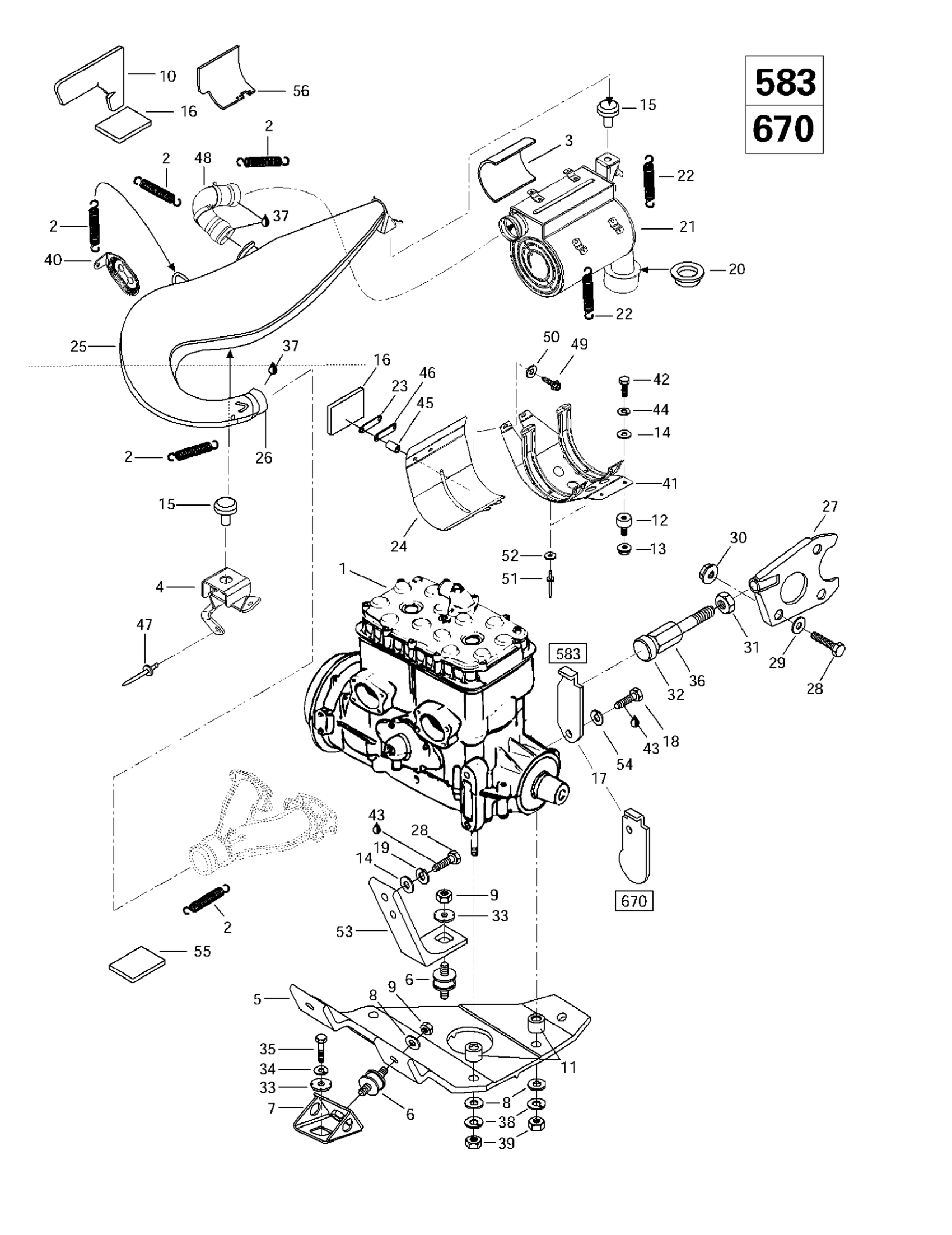 Engine Support And Muffler (583, 670)