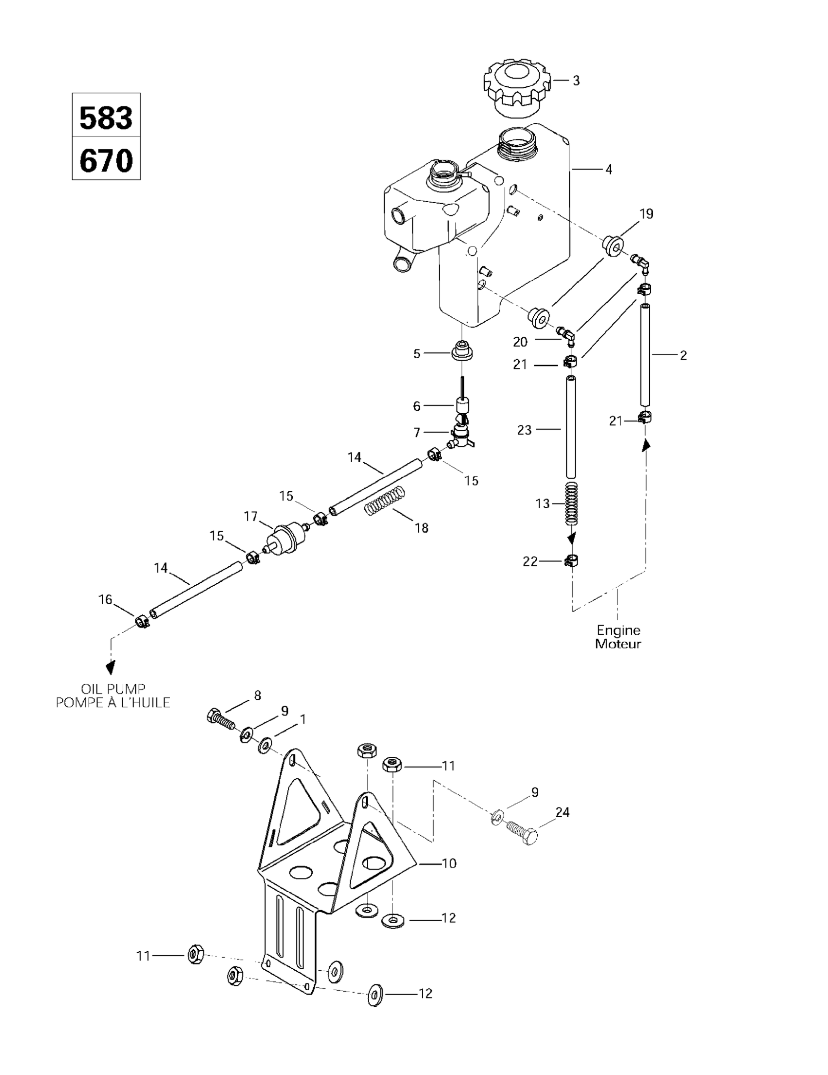 Ski-Doo MX Z 440 F/Z 583/Z 670 1997 Oil Tank And Support (583, 670) Diagram