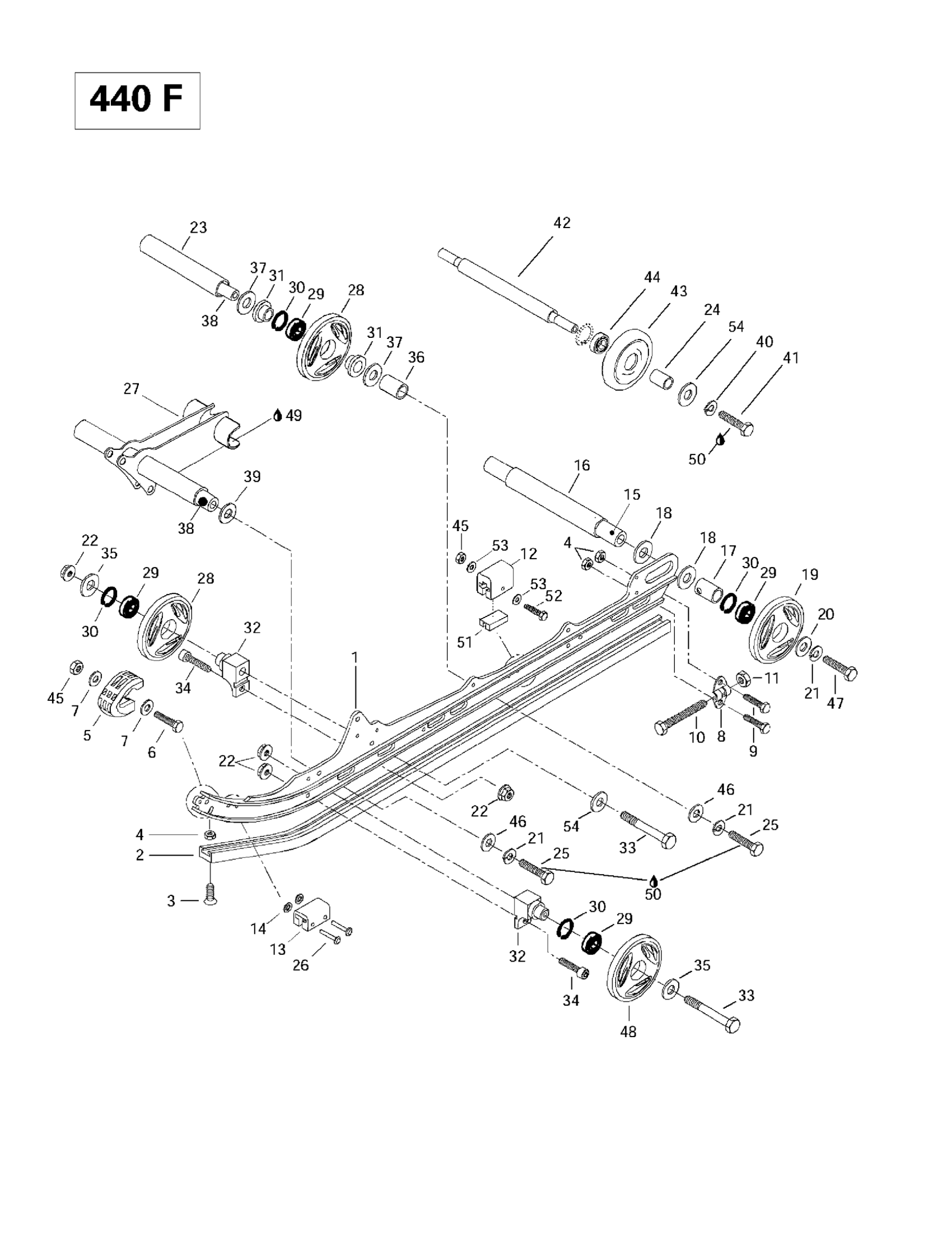 Ski-Doo MX Z 440 F/Z 583/Z 670 1997 Rear Suspension (440F) Diagram