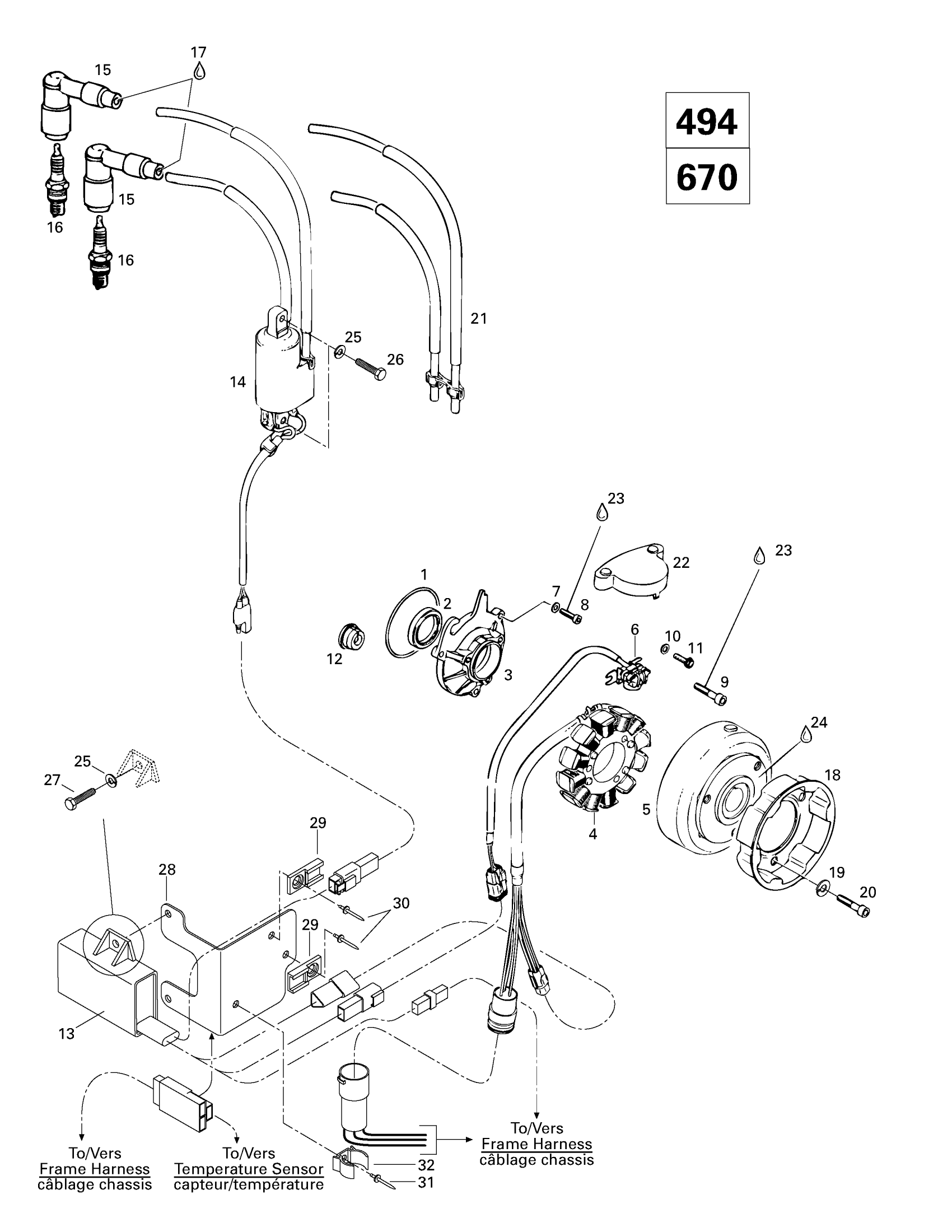 Ski-Doo MX Z 500/583/670, 1998 Magneto 12V 220W (494, 670) Diagram