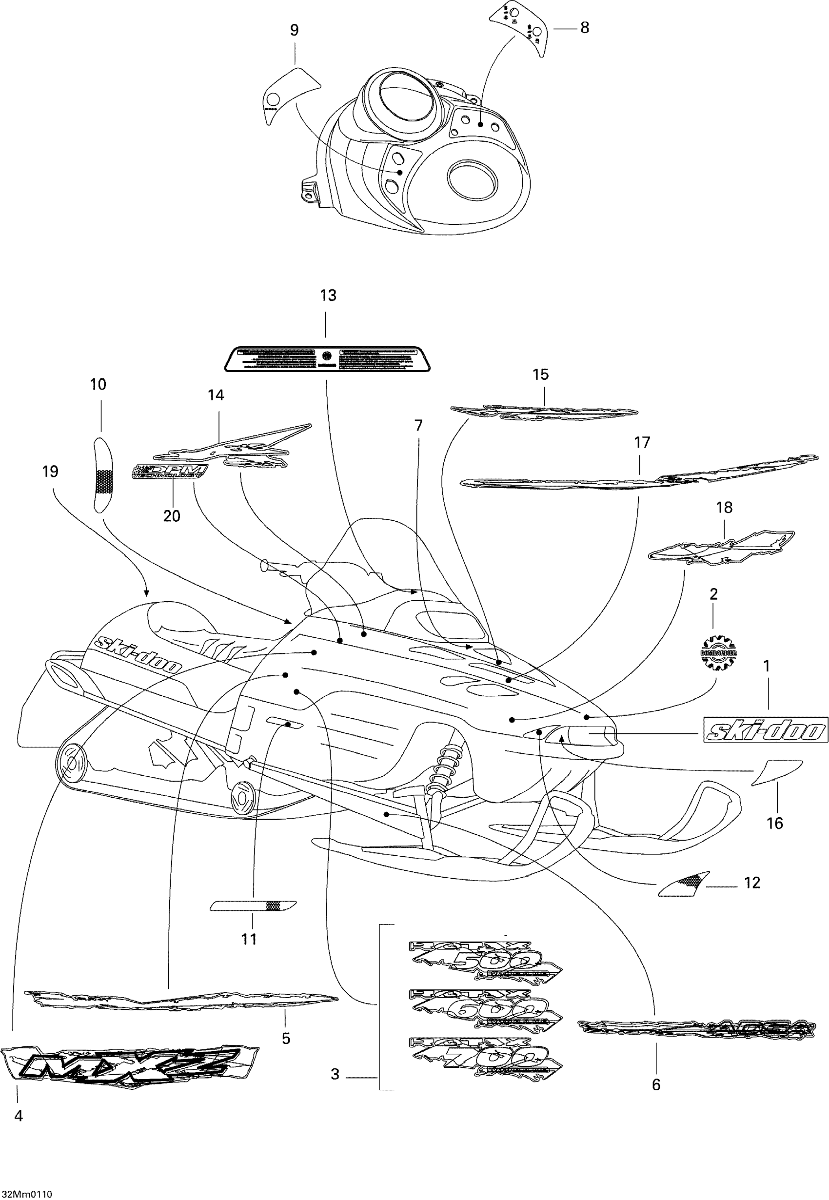 Ski-Doo MX Z 500/600/700, 2001 Decals Diagram
