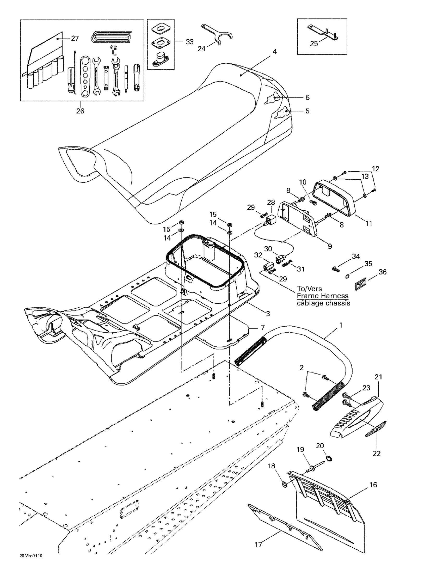 Ski-Doo MX Z 500/600/700, 2001 Seat And Accessories Diagram