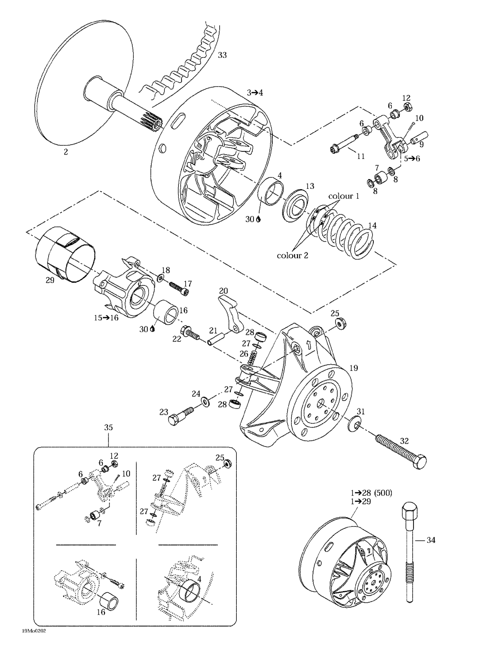 Ski-Doo MX Z 500/600/700/800, 2002 Drive Pulley Diagram