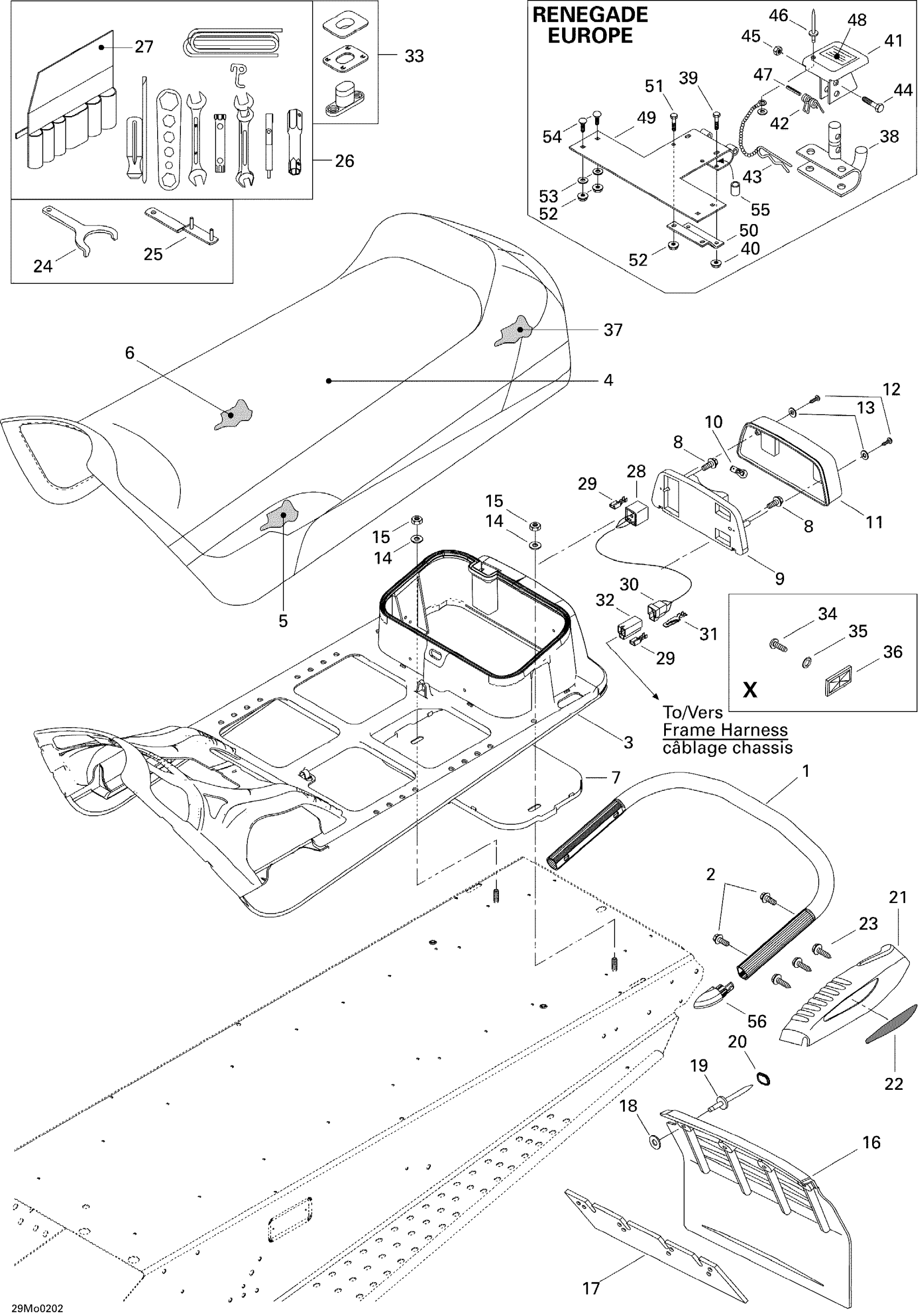 Ski-Doo MX Z 500/600/700/800, 2002 Seat And Accessories Diagram
