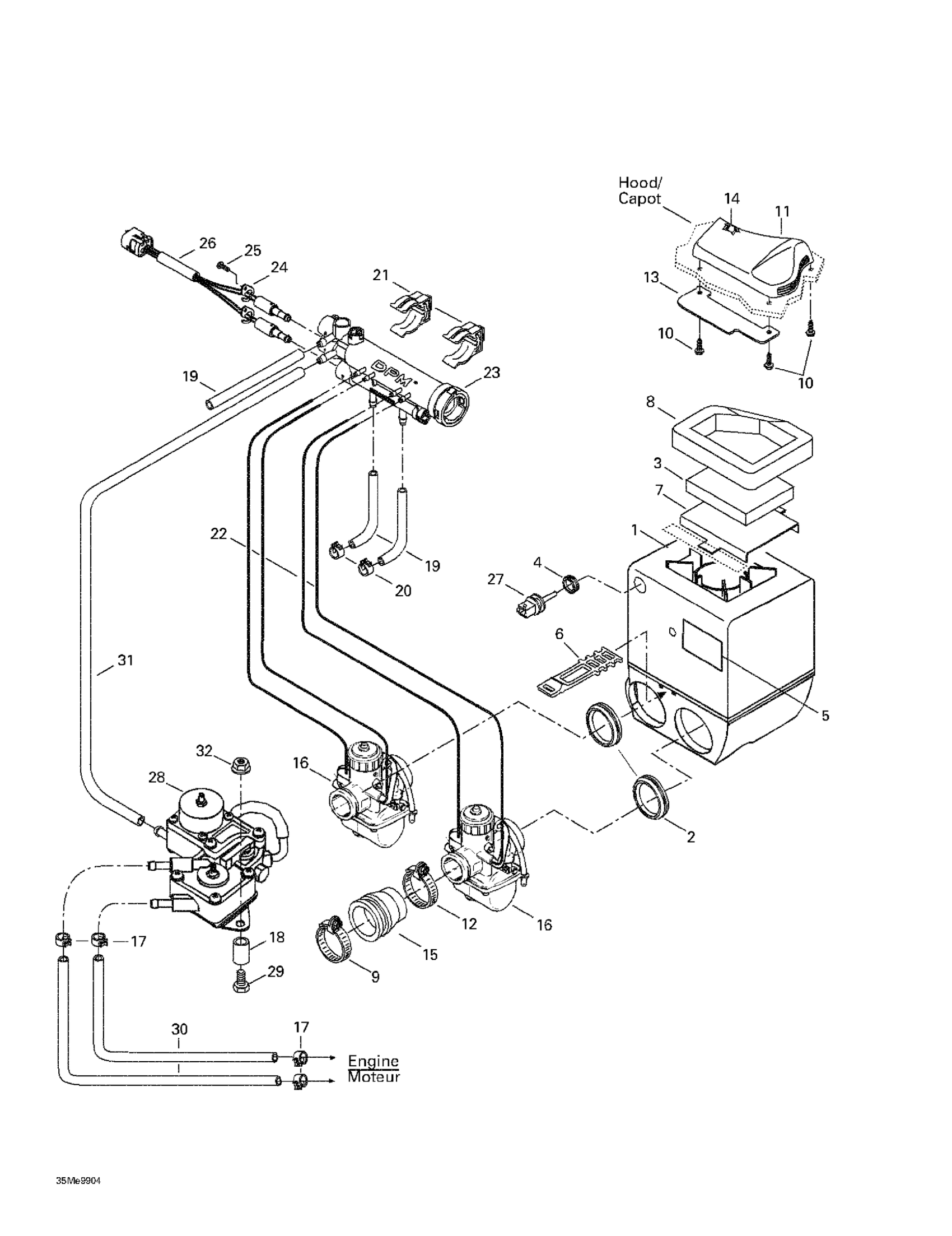 Ski-Doo MX Z 500/670 HO, 1999 Air Intake System Diagram