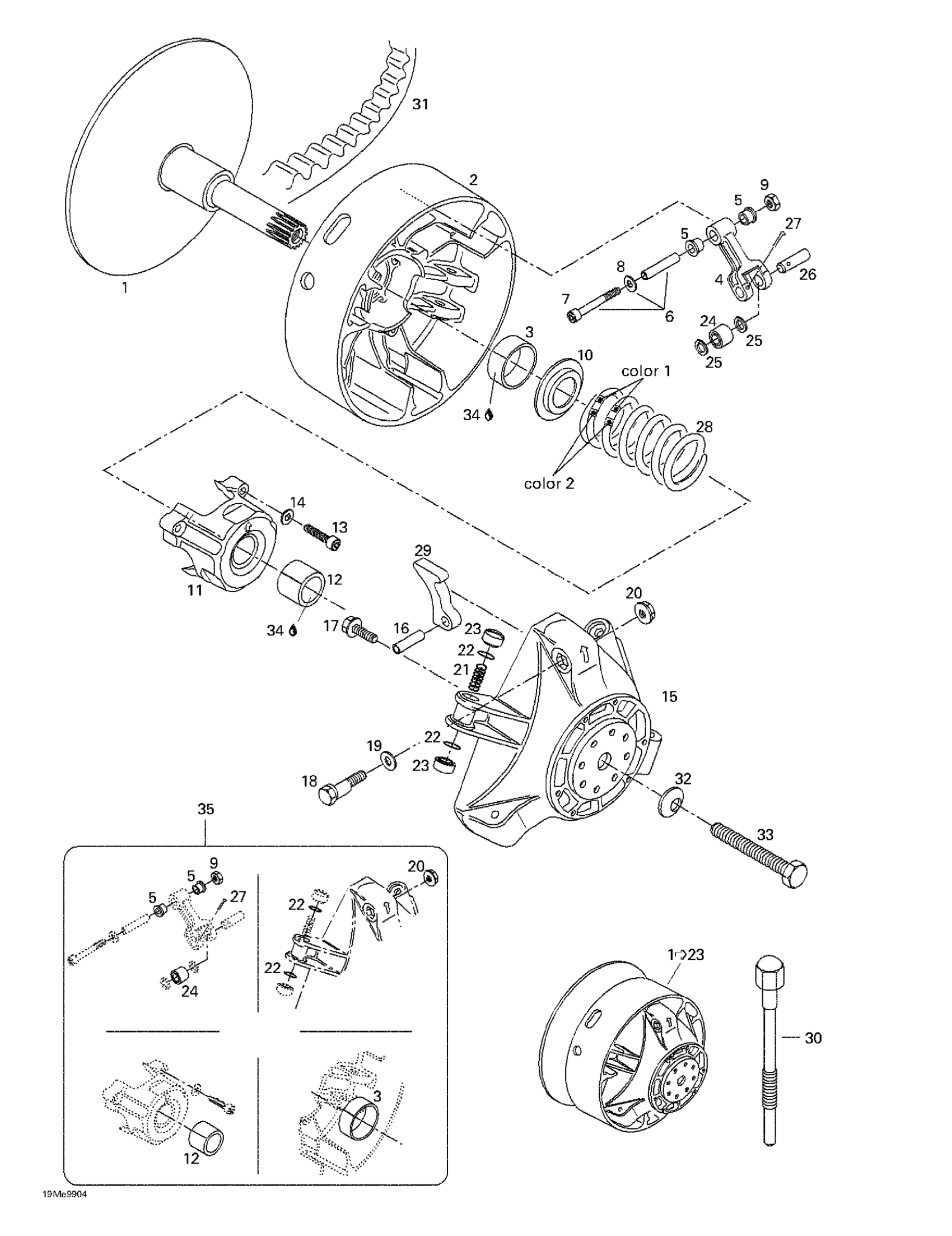 Ski-Doo MX Z 500/670 HO, 1999 Drive Pulley Diagram