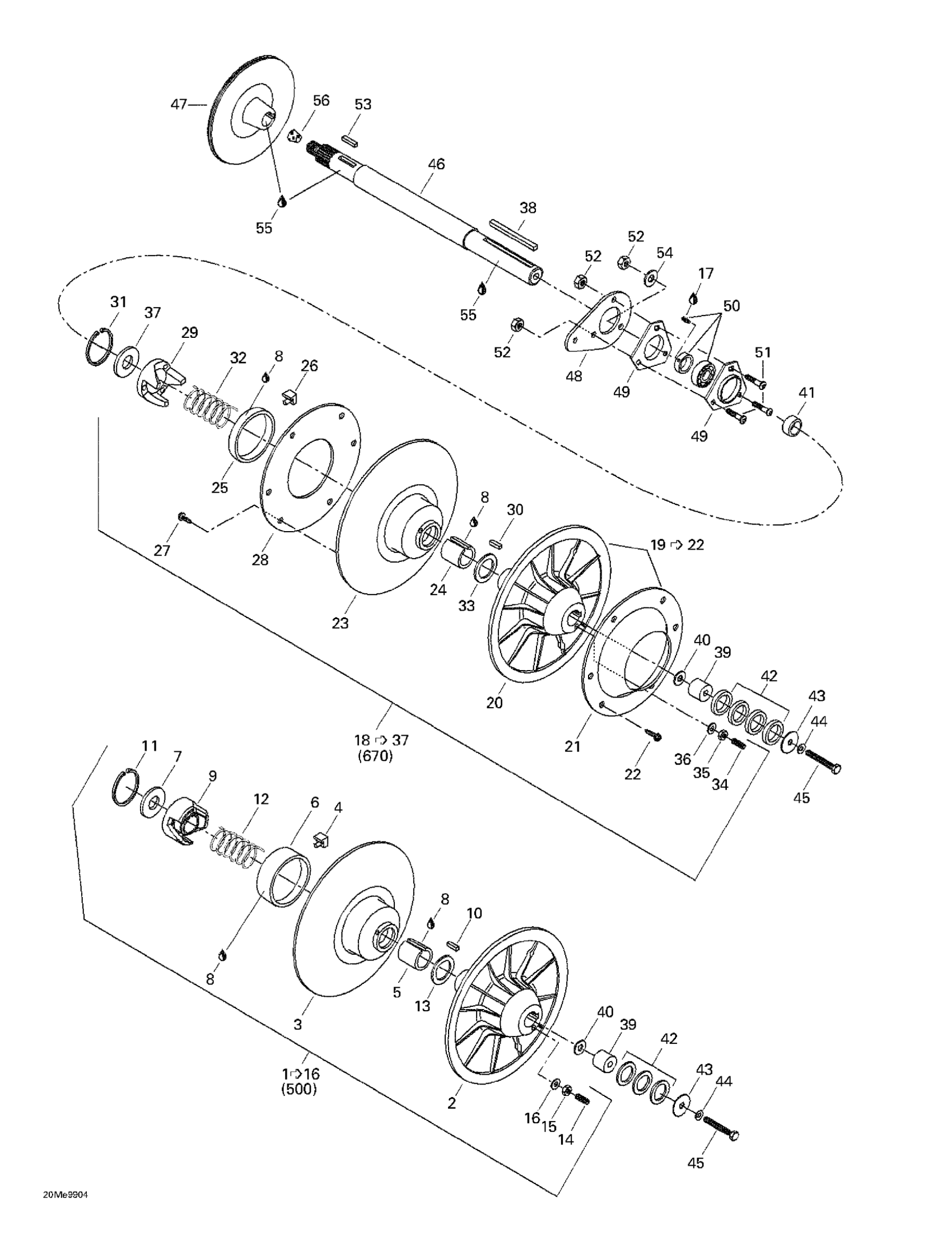 Ski-Doo MX Z 500/670 HO, 1999 Driven Pulley Diagram