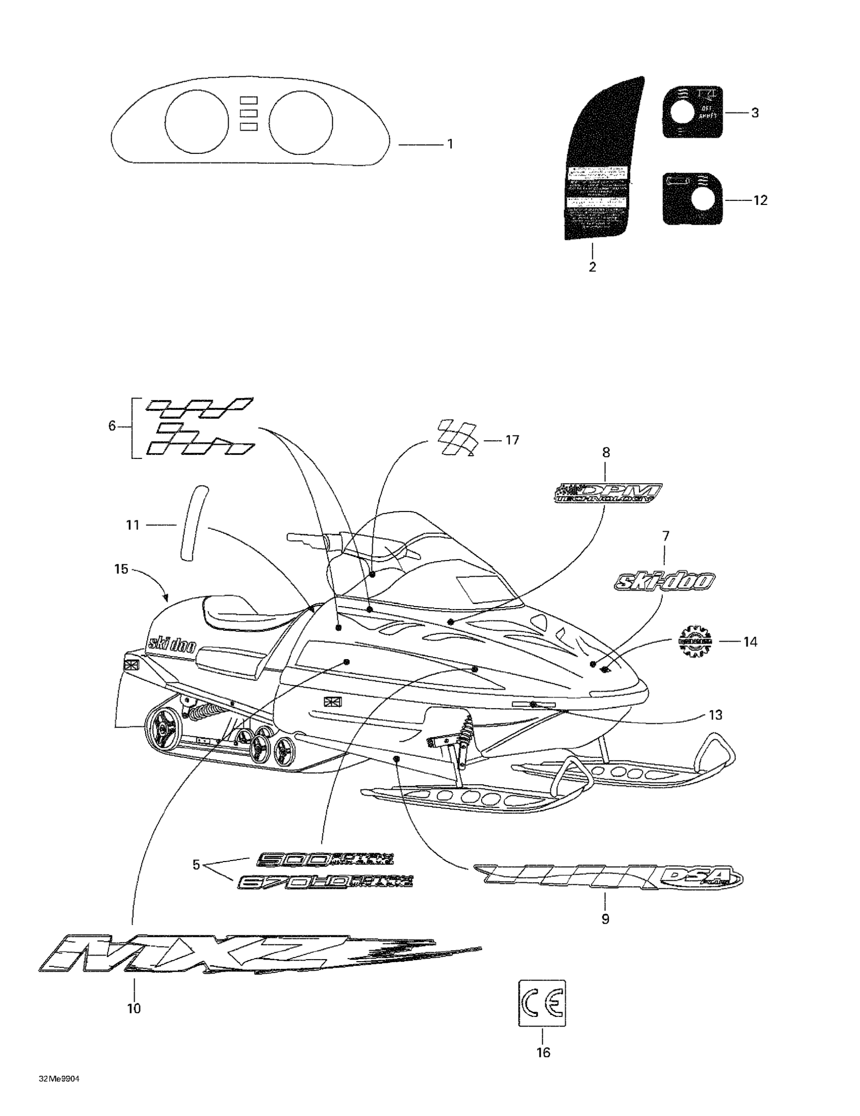 Ski-Doo MX Z 500/670 HO, 1999 Decals Diagram