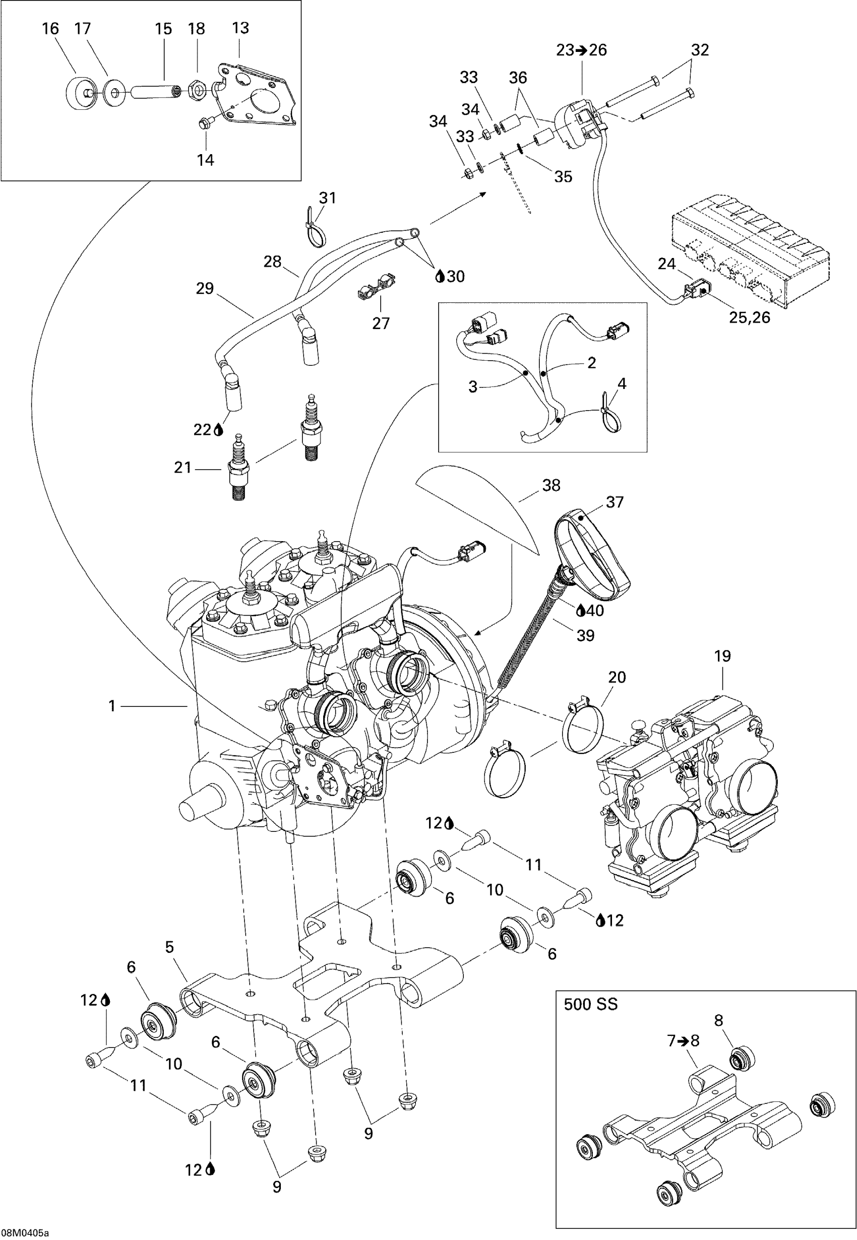 Ski-Doo MX Z 500SS Trail/Adrenaline, 2004 Engine Assembly And Support Diagram