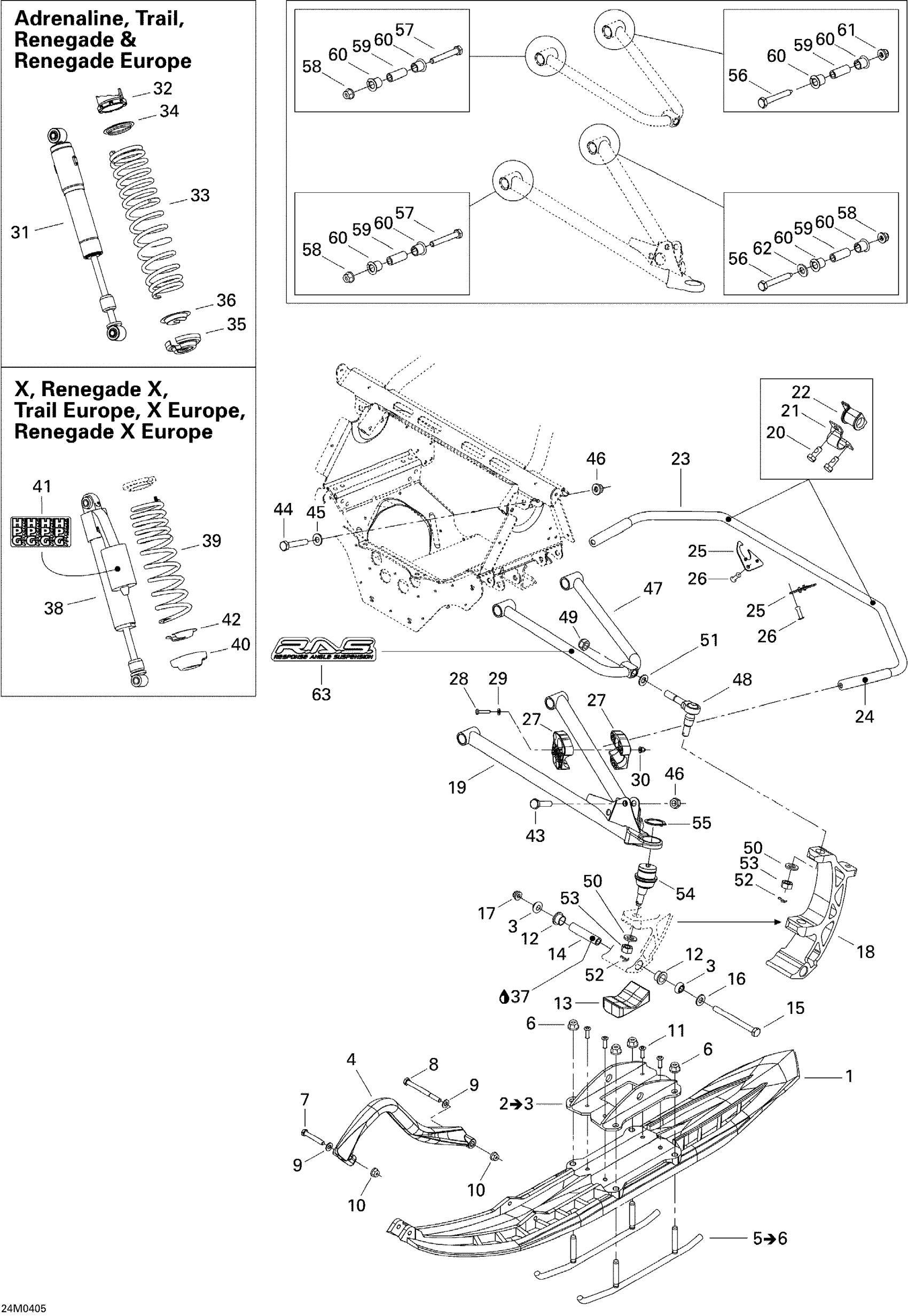 Ski-Doo MX Z 500SS Trail/Adrenaline, 2004 Front Suspension And Ski Diagram