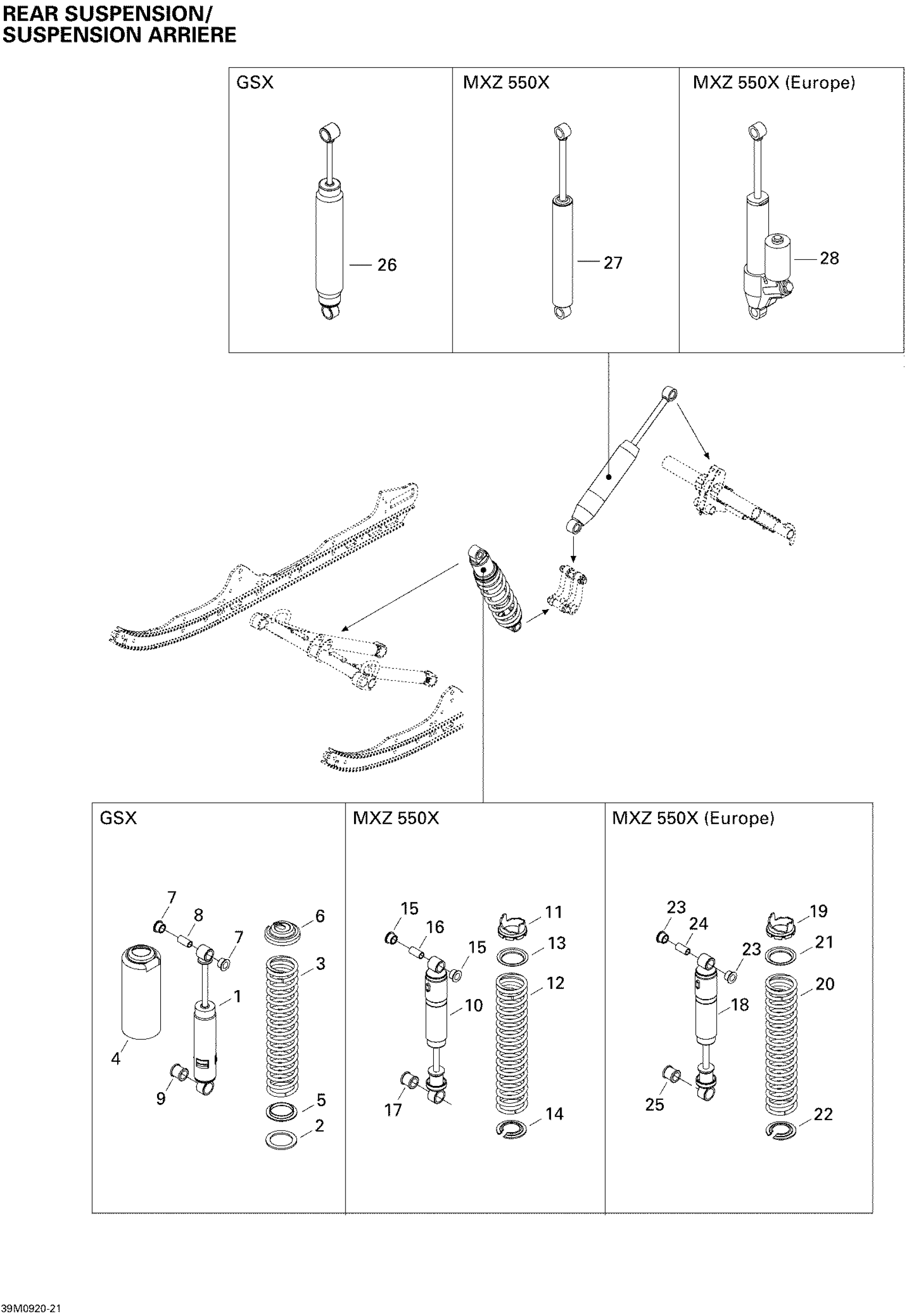 Ski-Doo MX Z 550X , 2009 Rear Suspension Shocks Diagram