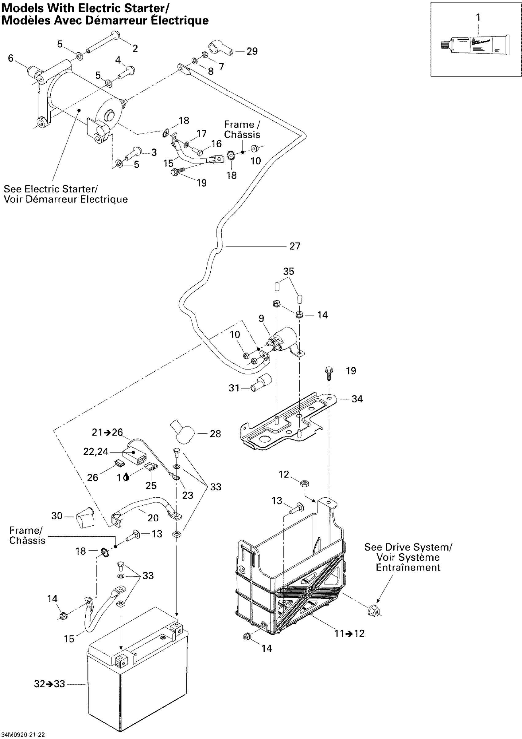 Ski-Doo MX Z 550X , 2009 Battery And Starter Diagram