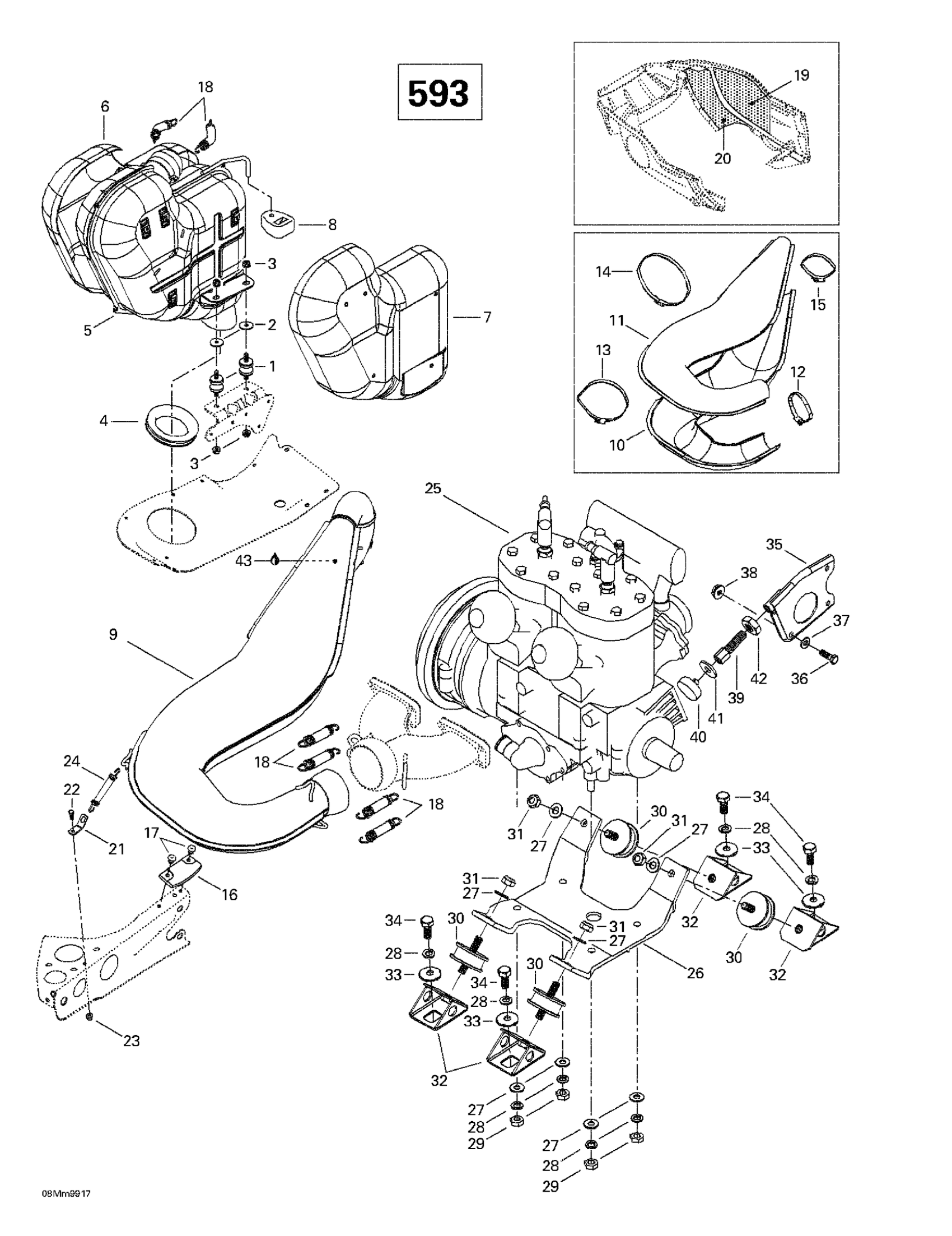 Ski-Doo MX Z 600, 1999 Engine Support And Muffler (593) Diagram