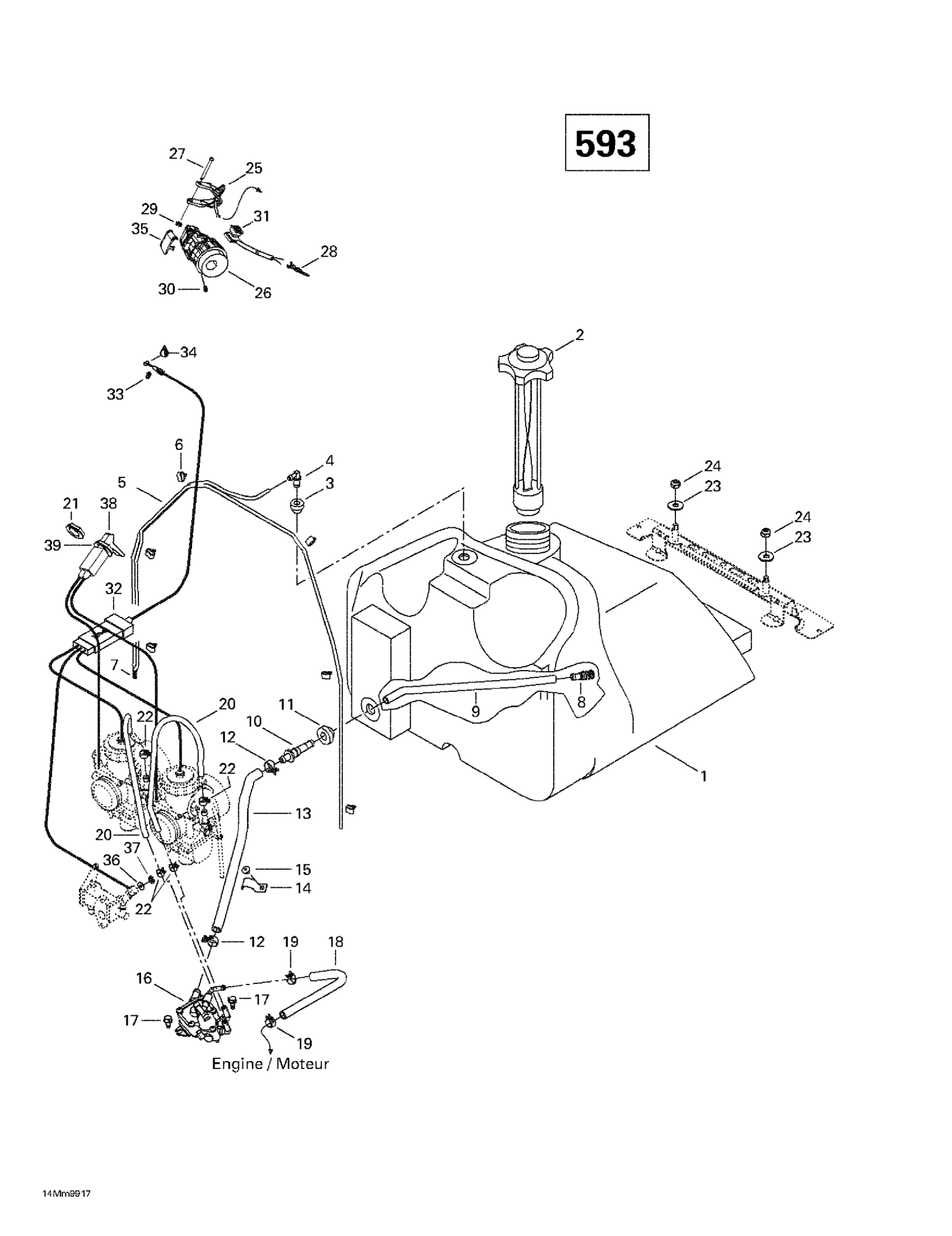Ski-Doo MX Z 600, 1999 Fuel System (593) Diagram