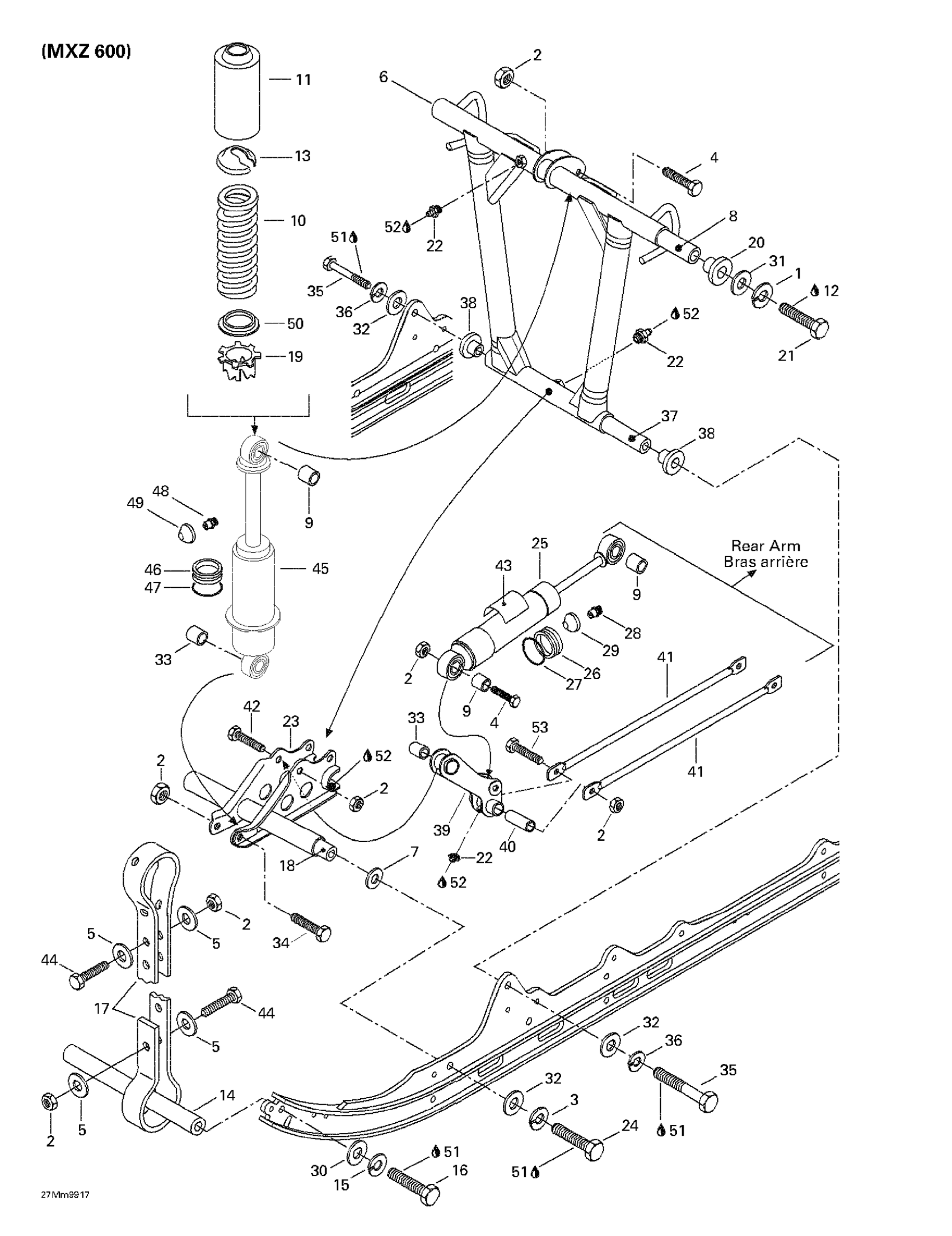 Ski-Doo MX Z 600, 1999 Front Arm, Rear Suspension (MX Z 600) Diagram