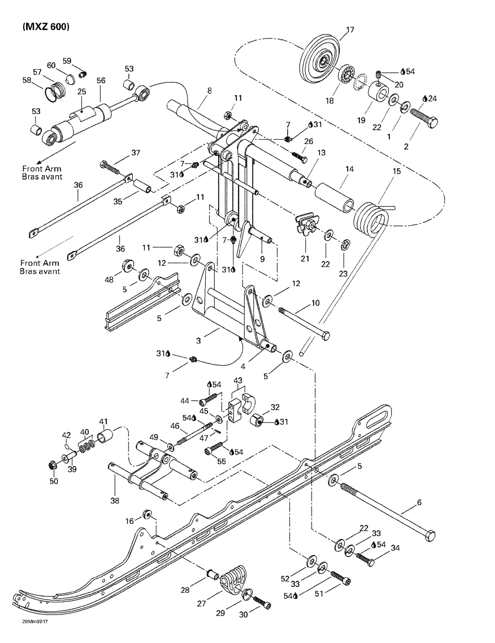 Ski-Doo MX Z 600, 1999 Rear Arm, Rear Suspension (MX Z 600) Diagram